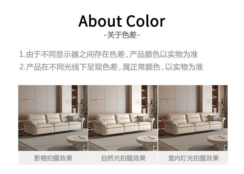 B系优选 现代简约 接触面真皮 全实木刨方木架+蛇形弹簧+静音拉扣 卡其色 2.8米直排 四人位 沙发¥8155