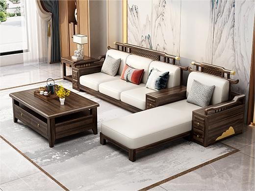 墨槿 新中式 科技布+高密度海绵 +小乌金+实木多层板 乌金色 单人位沙发+双人位沙发+三人位 组合沙发