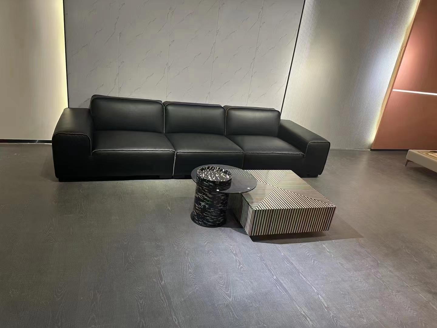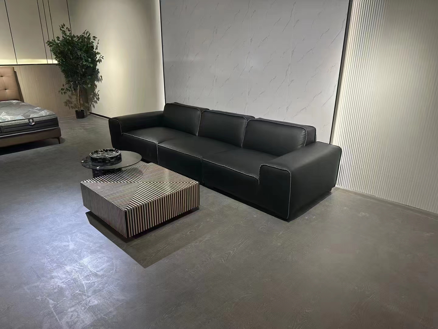 梵纳意简 极简 接触面头层牛皮+多层实木板+实木框架+高回弹海绵+不锈钢五金+羽绒 直排沙发 网红 极简迪兰2.85米沙发¥9753