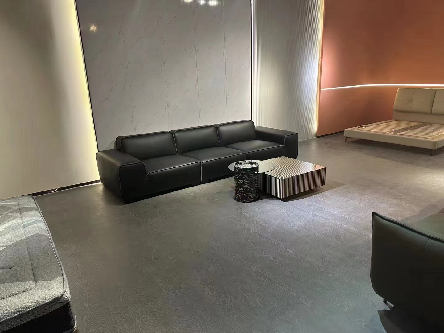 梵纳意简 极简 接触面头层牛皮+多层实木板+实木框架+高回弹海绵+碳素钢钢五金 异形沙发 网红 极简龙骨3.5米沙发