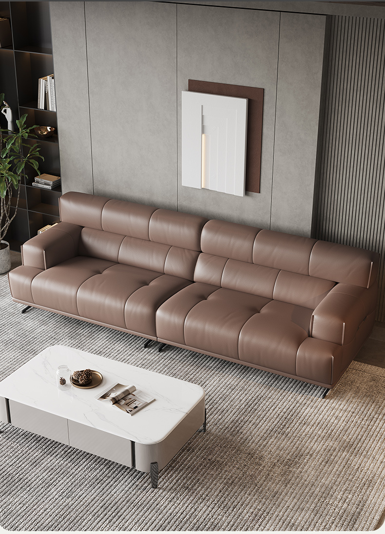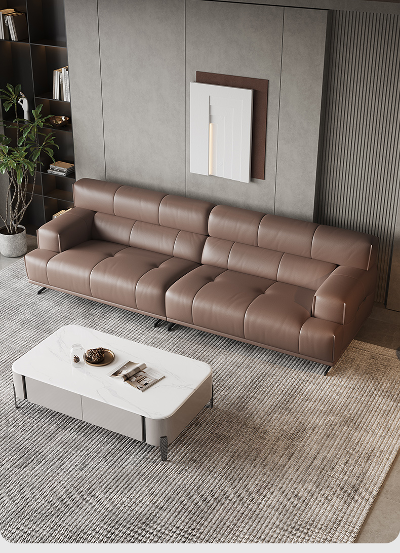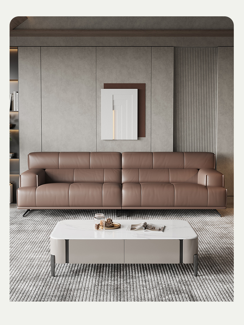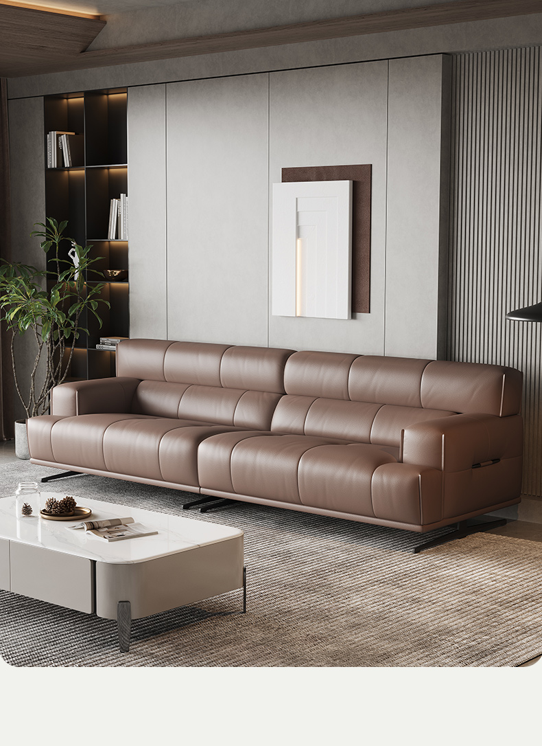 左右家居 现代简约 接触面头层牛皮 进口落叶松实木框架+蛇形弹簧系统+水性胶 高密度海绵 3.3米沙发¥7621