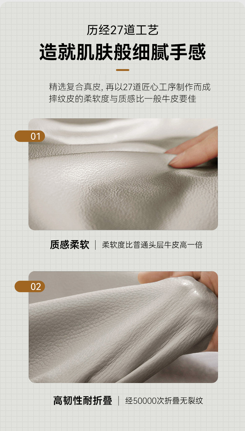 B系优选 现代简约 接触面中厚头层牛皮面料+进口俄罗斯松木框架+高回弹海绵+坐前真皮+仿真皮 四人位 3米沙发¥6313