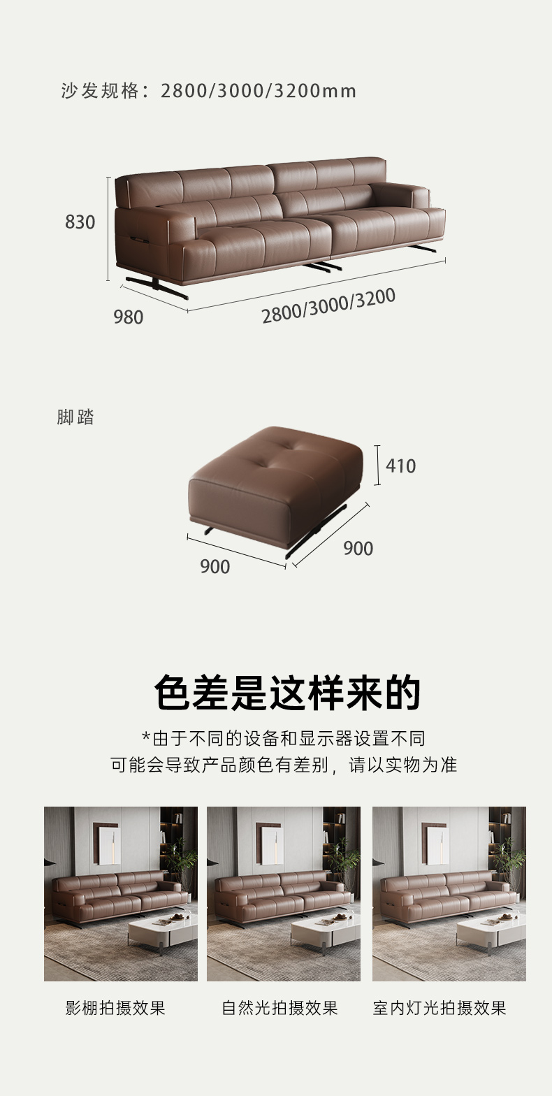 A家家居 现代简约 接触面进口头层黄牛皮(半皮座前真皮)碳素钢工字脚45密度海绵 脚踏坐凳