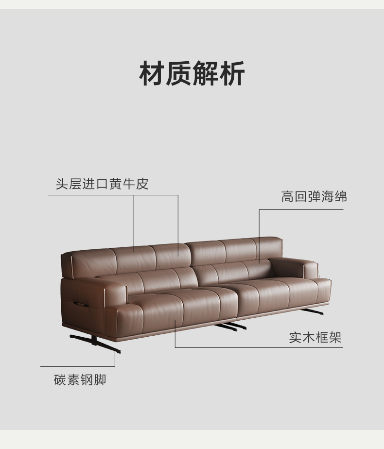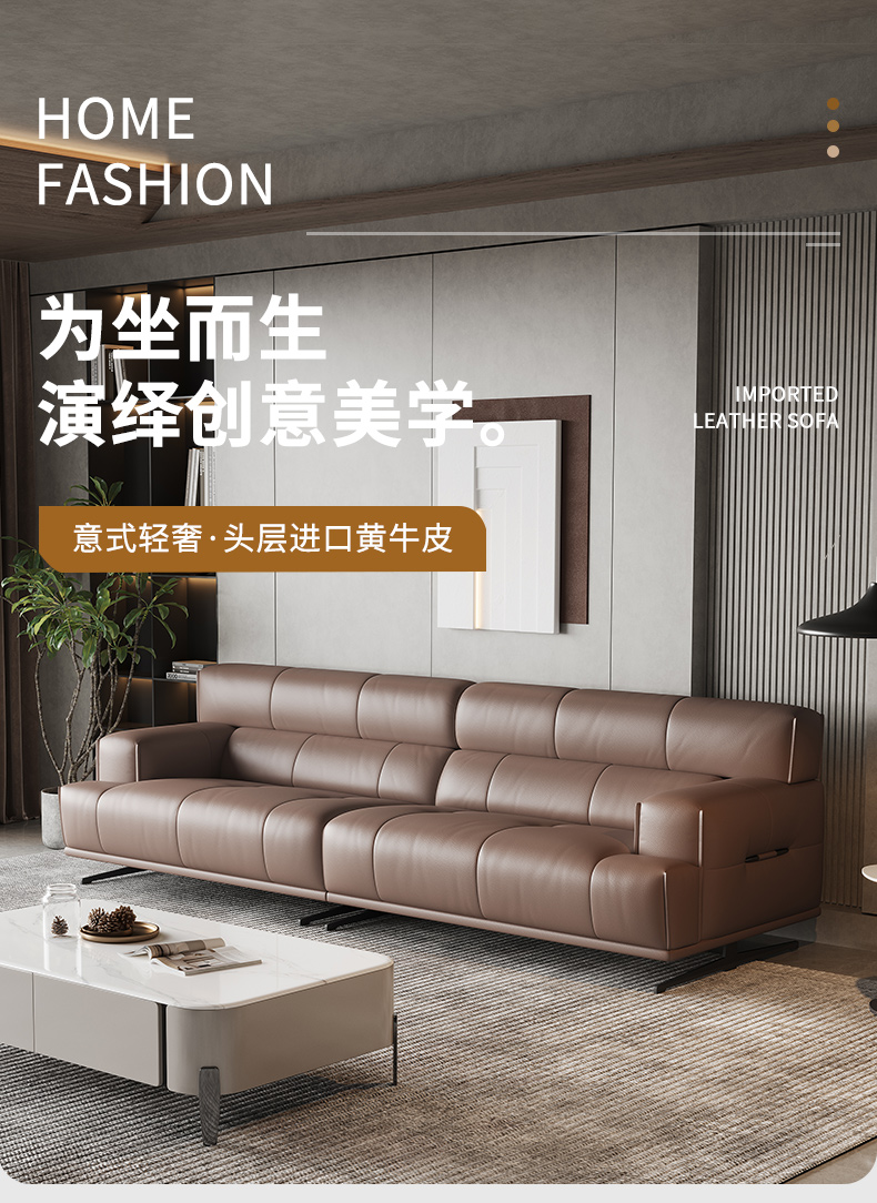 左右家居 现代简约 接触面头层牛皮 进口落叶松实木框架+蛇形弹簧系统+水性胶 高密度海绵 2.82米沙发¥8155