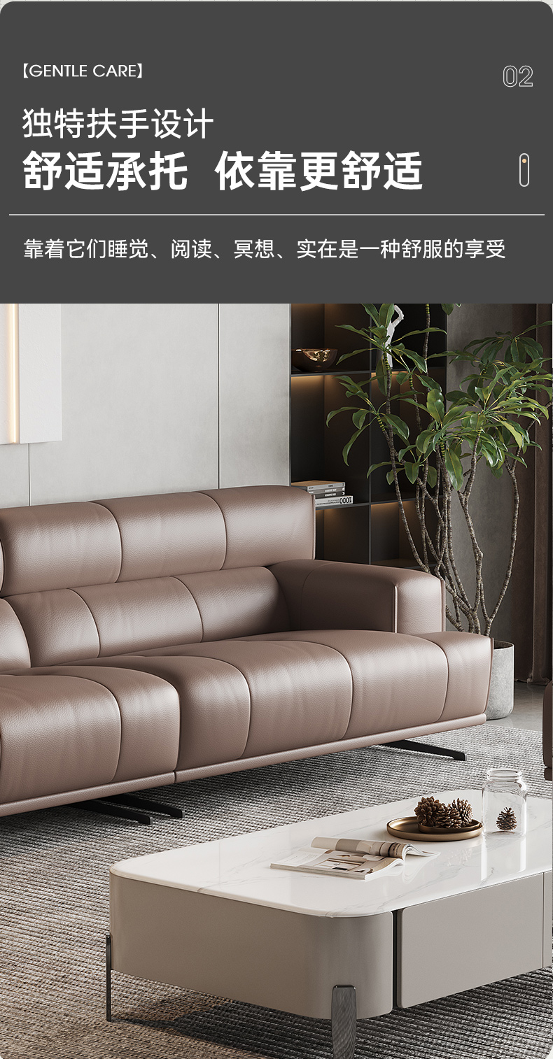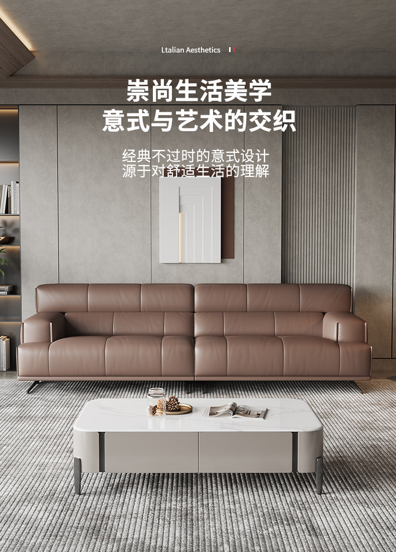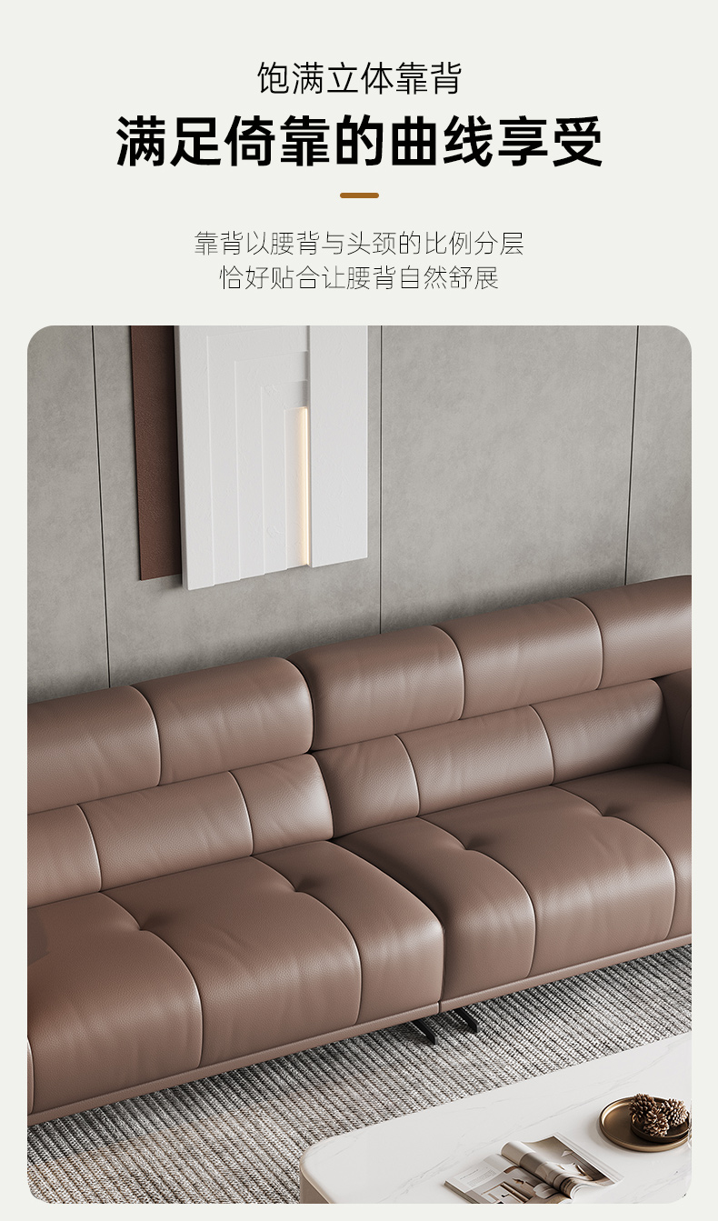 维利品尚 现代简约 接触面头层真皮+框架:落叶松木+实木脚 三人位 2.2米沙发