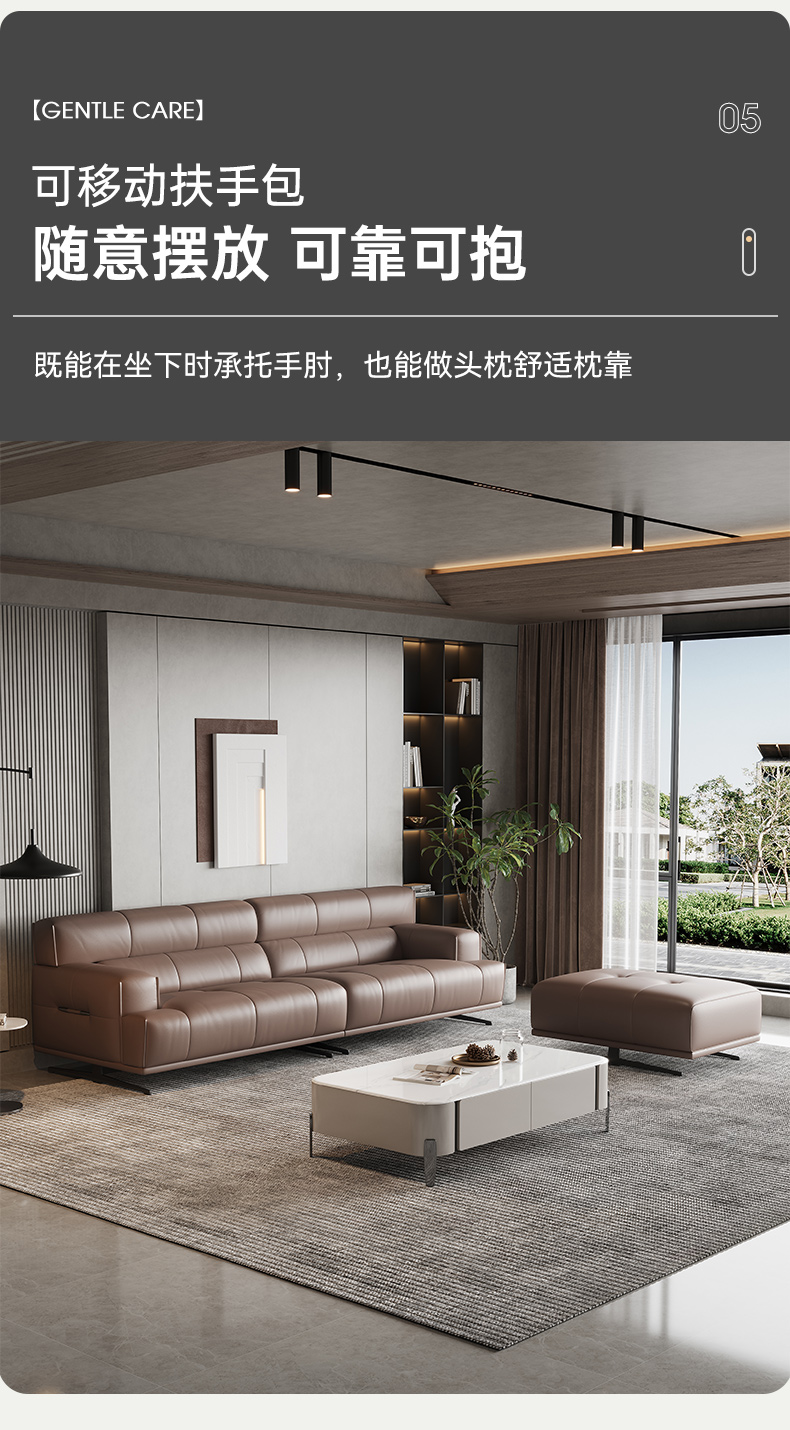 e家优选 现代简约 接触面头层黄牛皮 按木松木组合内框架 蛇簧+绷带 高回弹海棉座包靠包 扶手羽绒填充 头枕6档可以调节功能 二人位+四人位 皮艺组合功能沙发¥19455