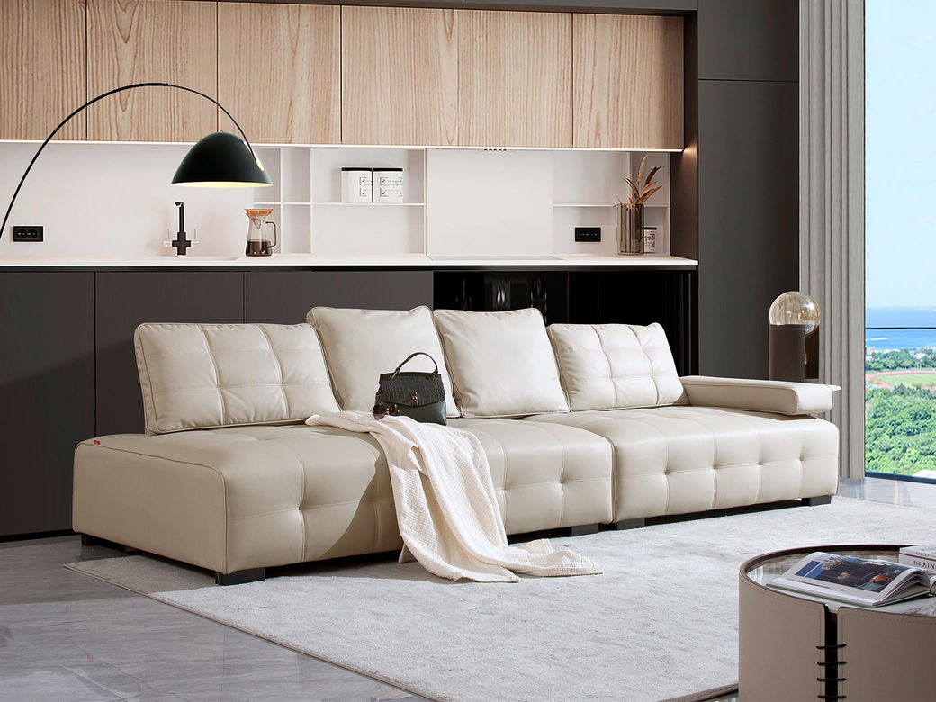 非凡工艺 现代简约 猫爪皮+框架落叶松木+高档黑砂五金脚 头枕可调节 3.08米 五人位(左单+单+右单) 沙发¥4893