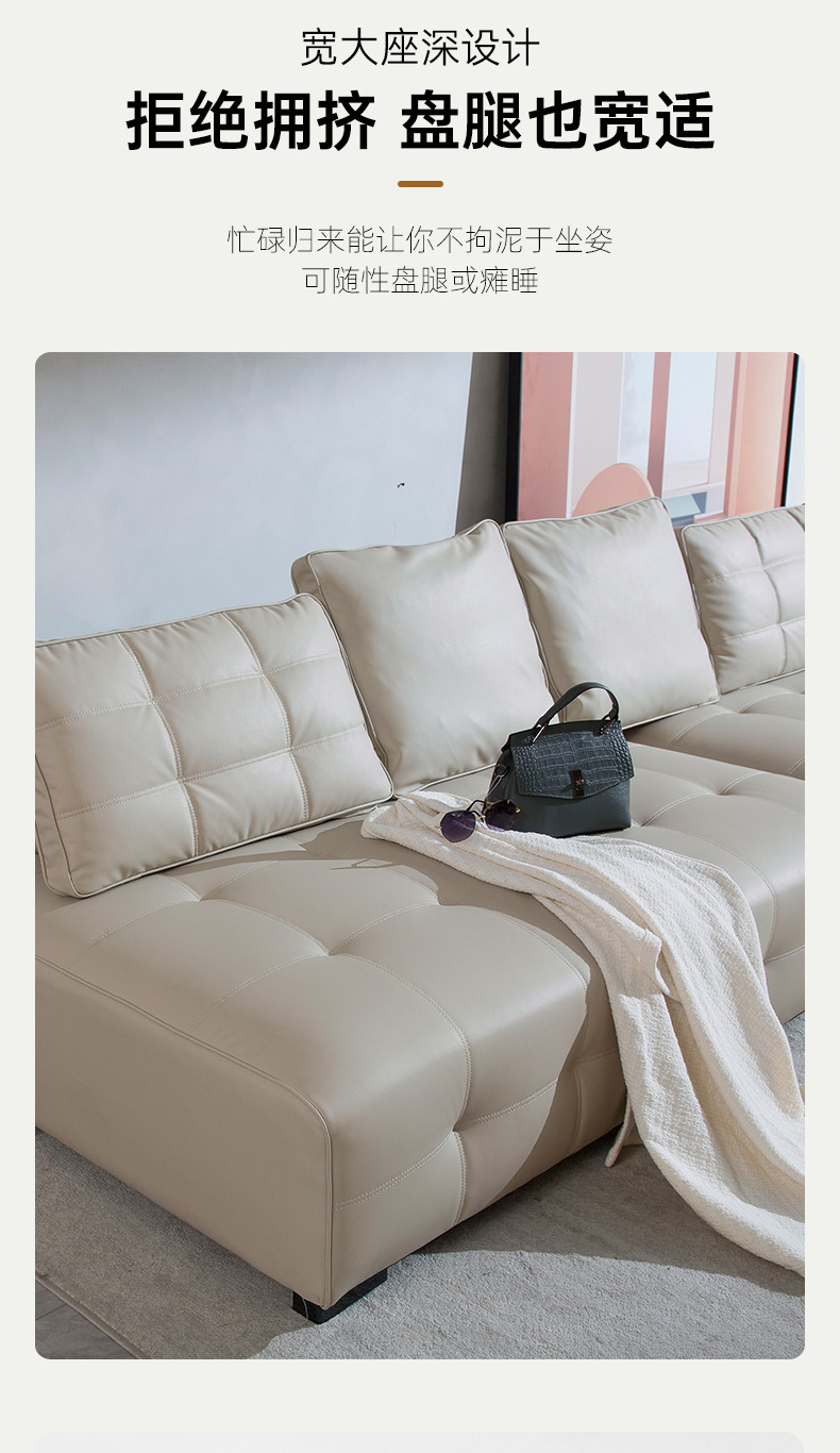 非凡工艺 现代简约 猫爪皮+框架落叶松木+高档黑砂五金脚 头枕可调节 3.08米 五人位(左单+单+右单) 沙发¥4893