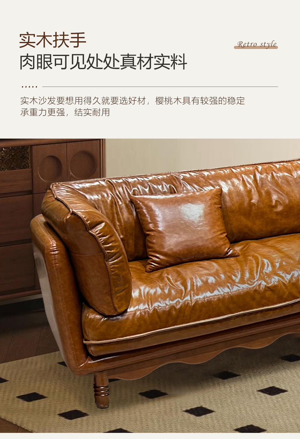 中古·森 网红 中古风 进口樱桃木+多层实木板+蛇形弹簧+全实木框架+仿真皮+高回弹海绵 直排2.8米沙发¥9106