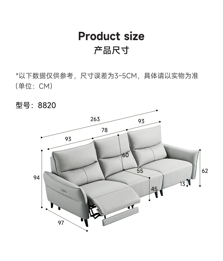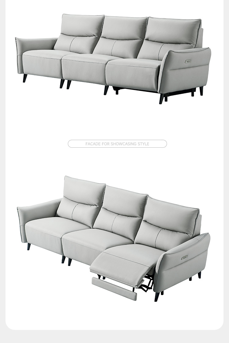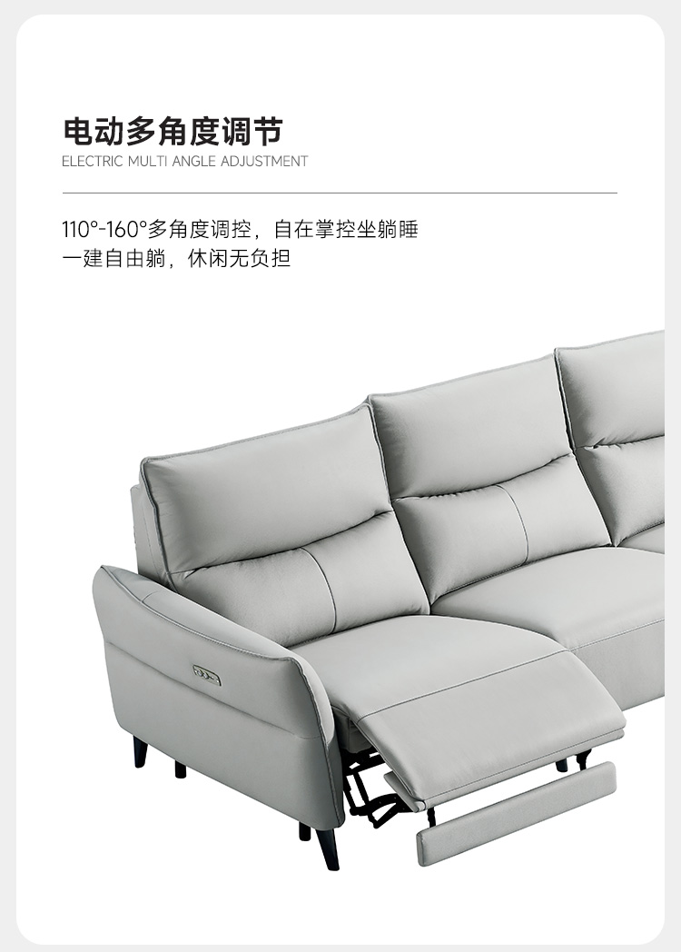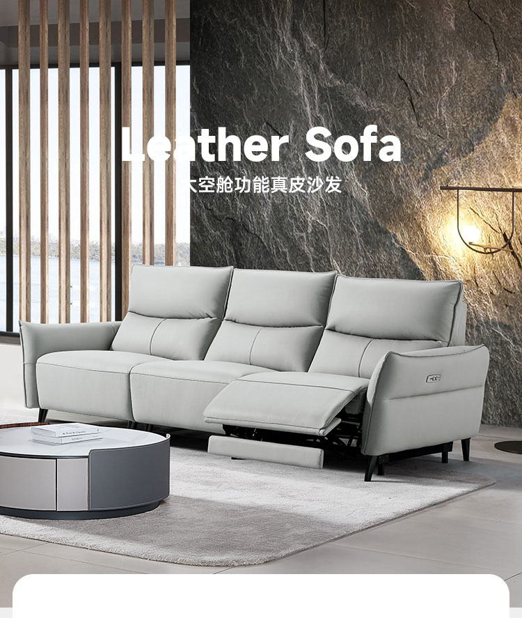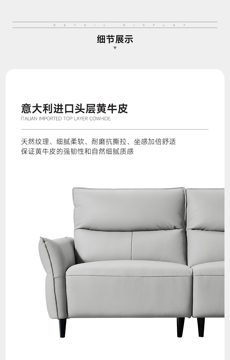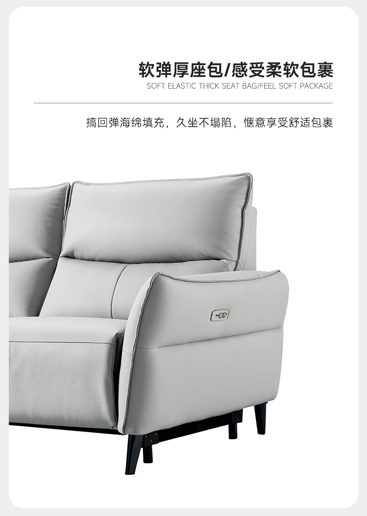 A系优选 现代简约 接触面进口头层牛皮+进口 落叶松+高 回弹海绵+零靠墙锐迈电机 2.63米 单电动功能沙发