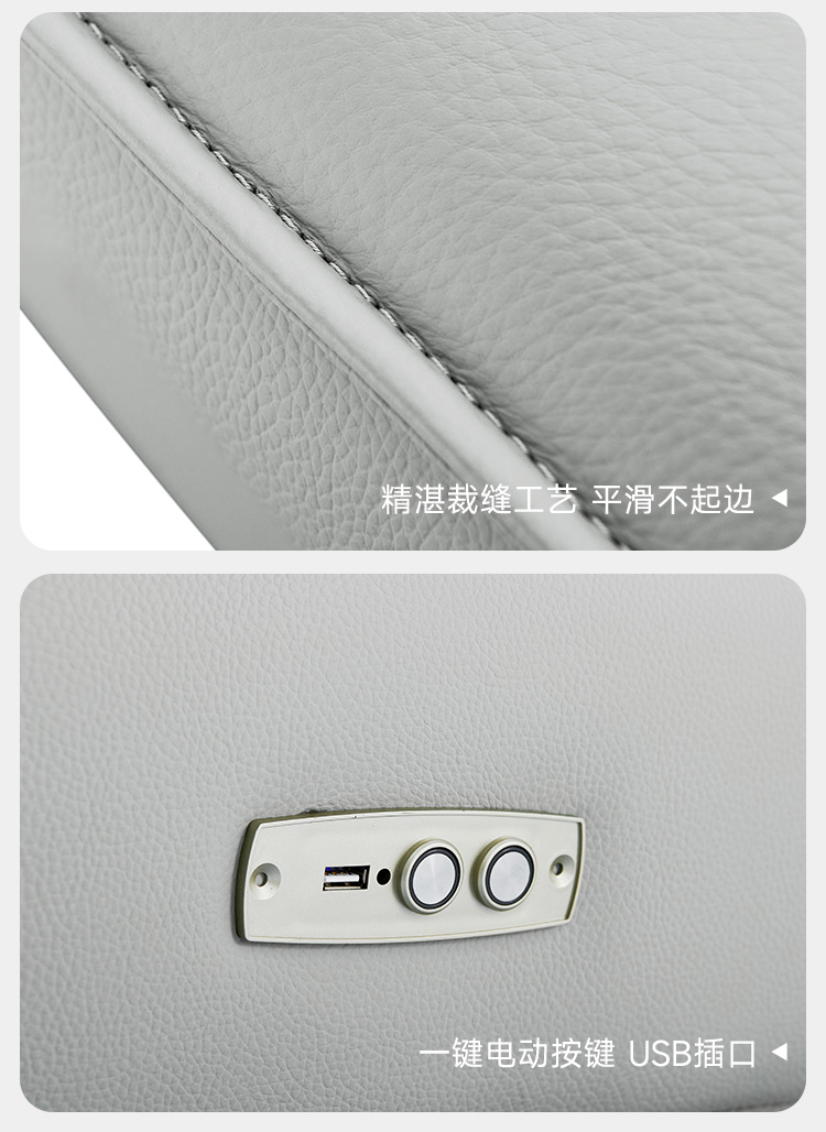 A系优选 现代简约 接触面进口头层牛皮+进口 落叶松+高 回弹海绵+零靠墙锐迈电机 2.6米 单电动 功能沙发