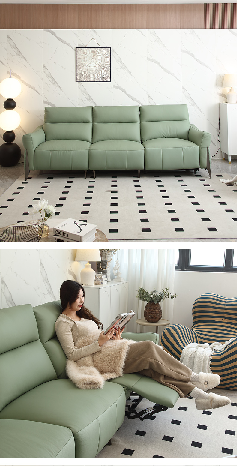 B系优选 现代简约 接触面进口头层牛皮+进口 落叶松+高 回弹海绵+零靠墙锐迈电机 2.95米 单电动功能沙发