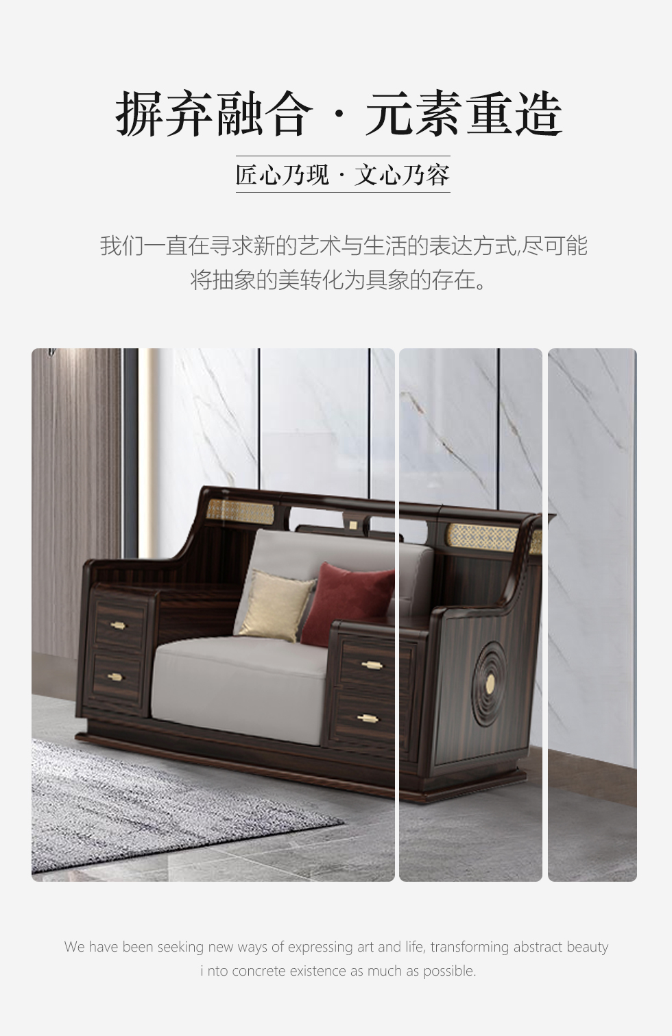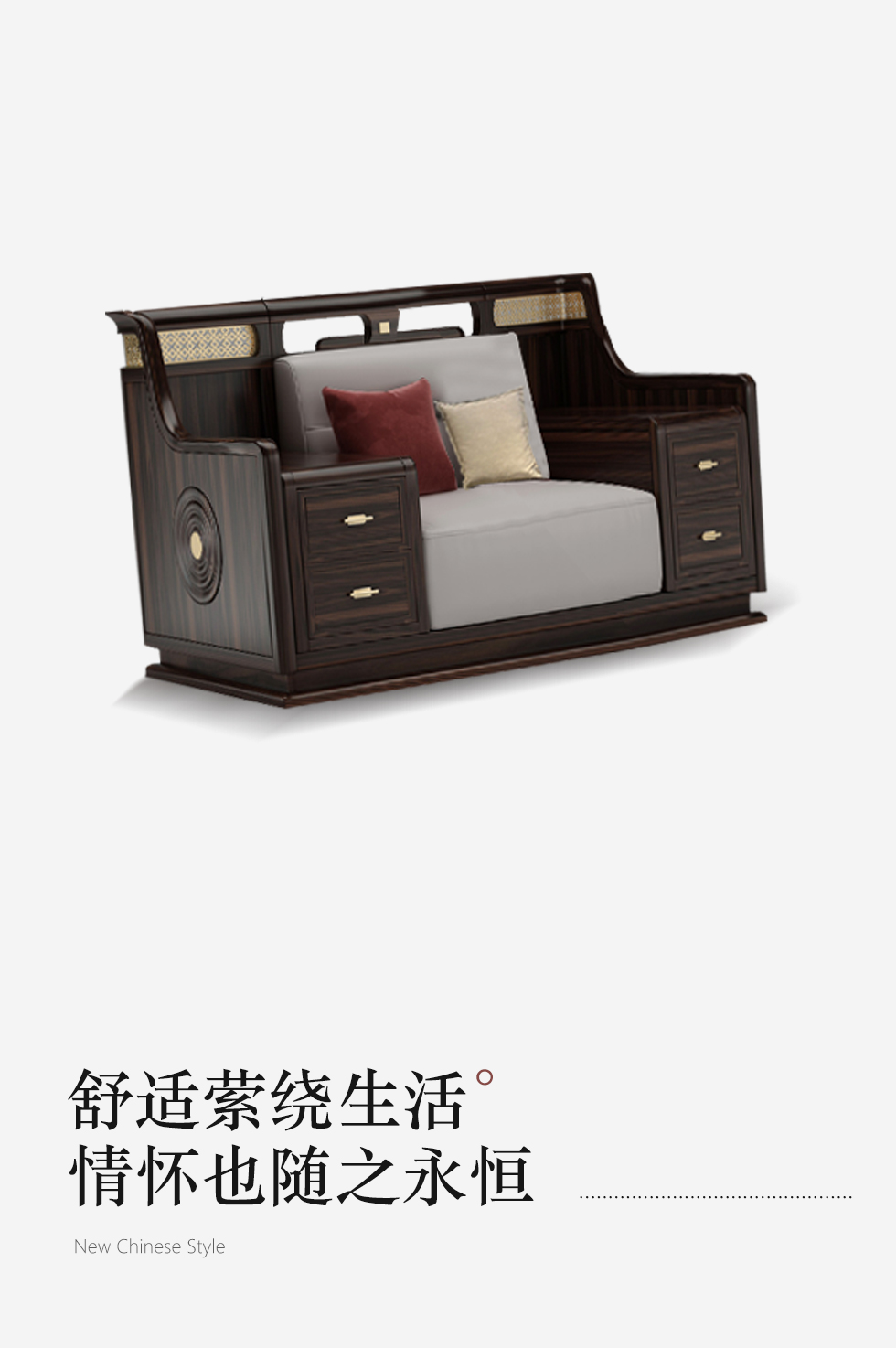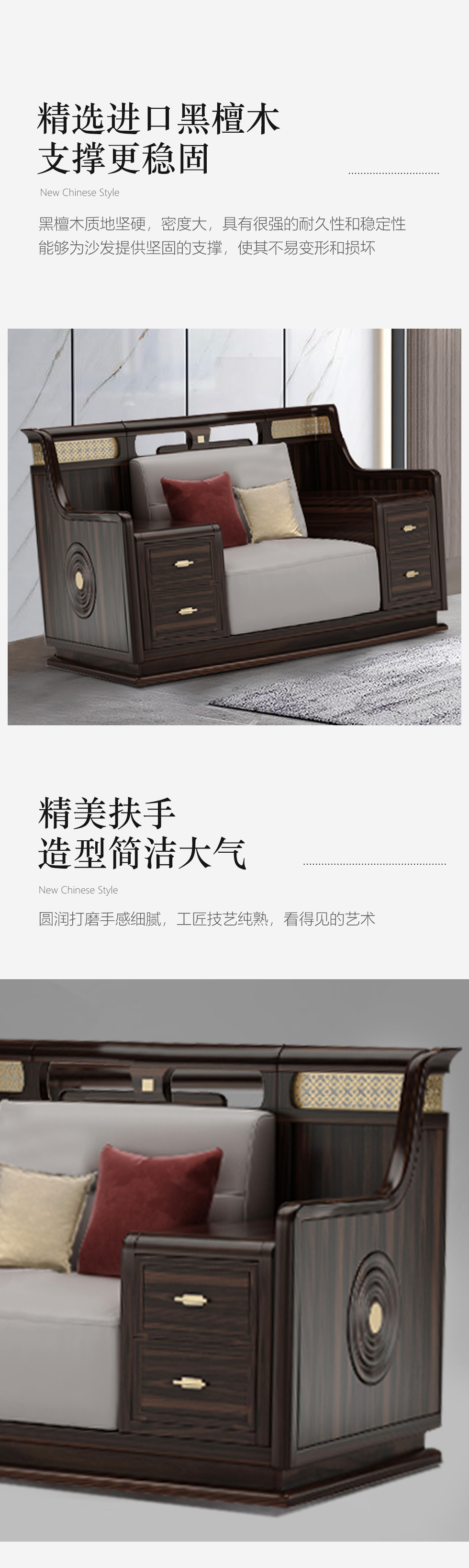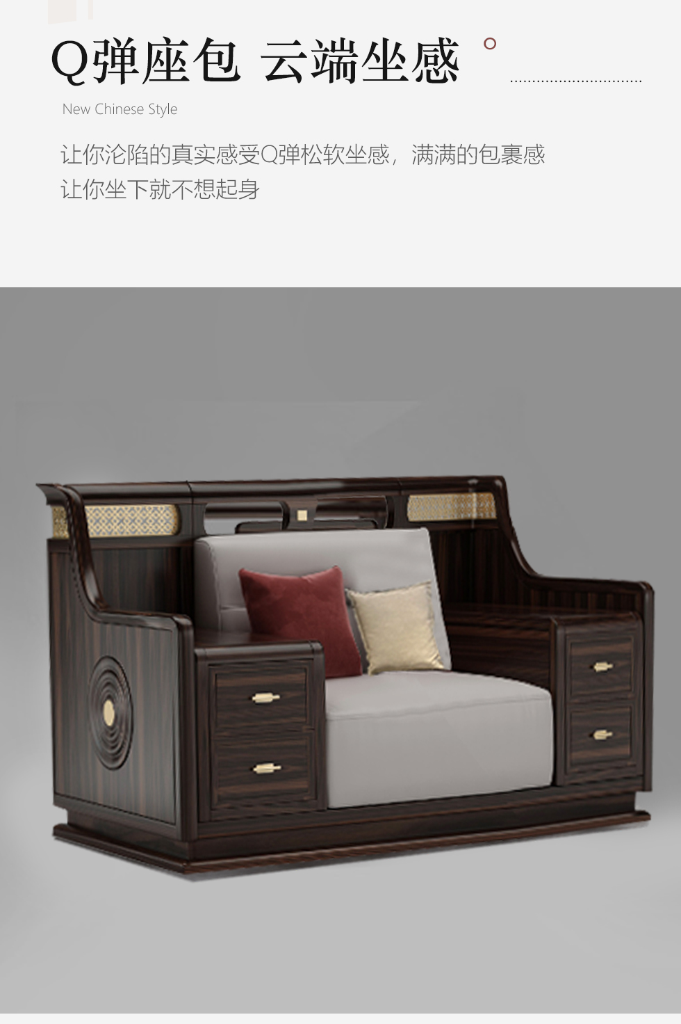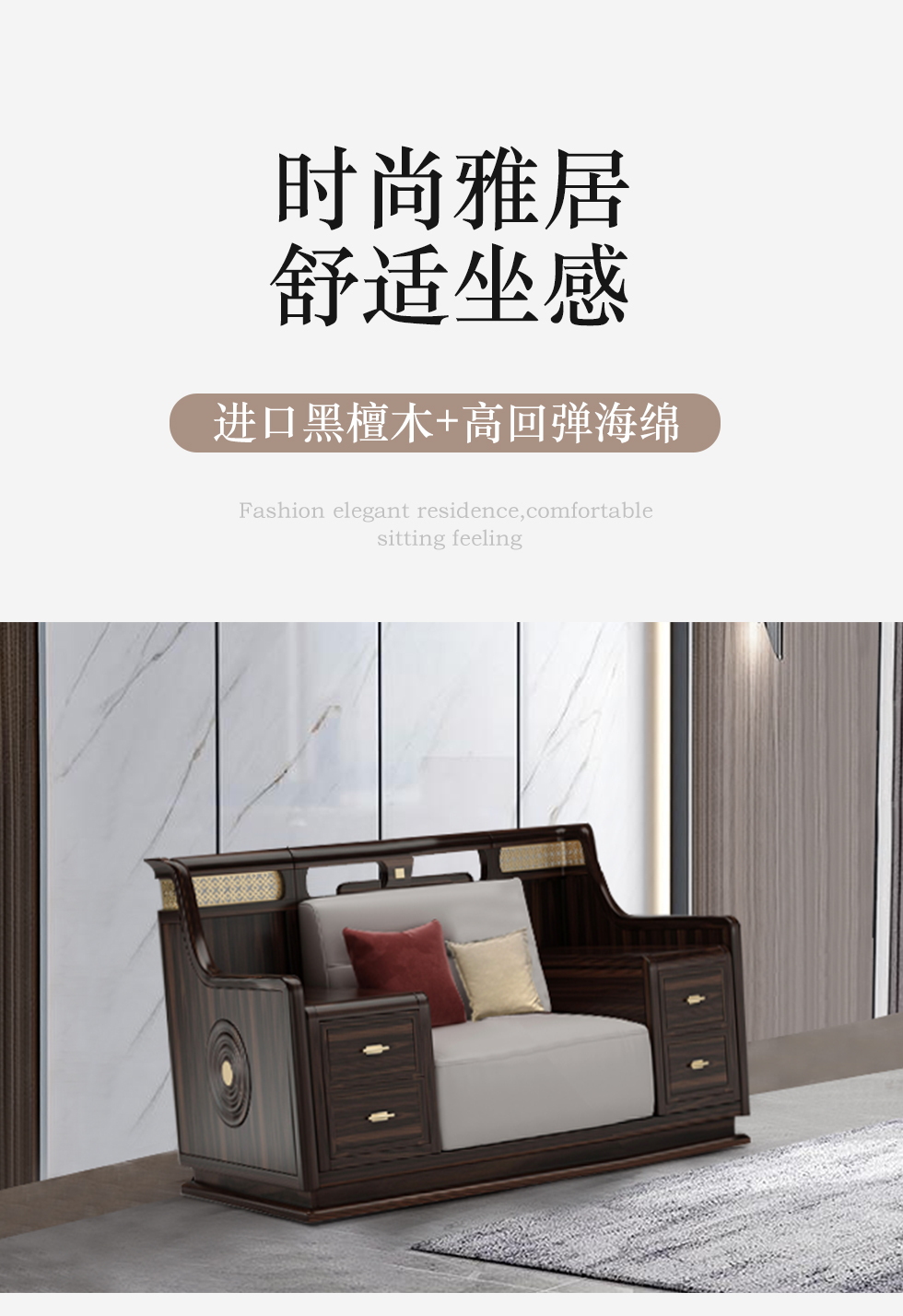 美檀家居 新中式 进口黑檀木+布艺+高回弹海绵+多层实木板+电镀五金 图片色 1+2+3 沙发