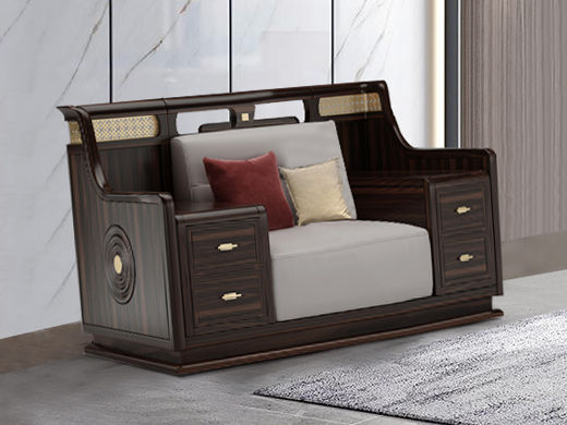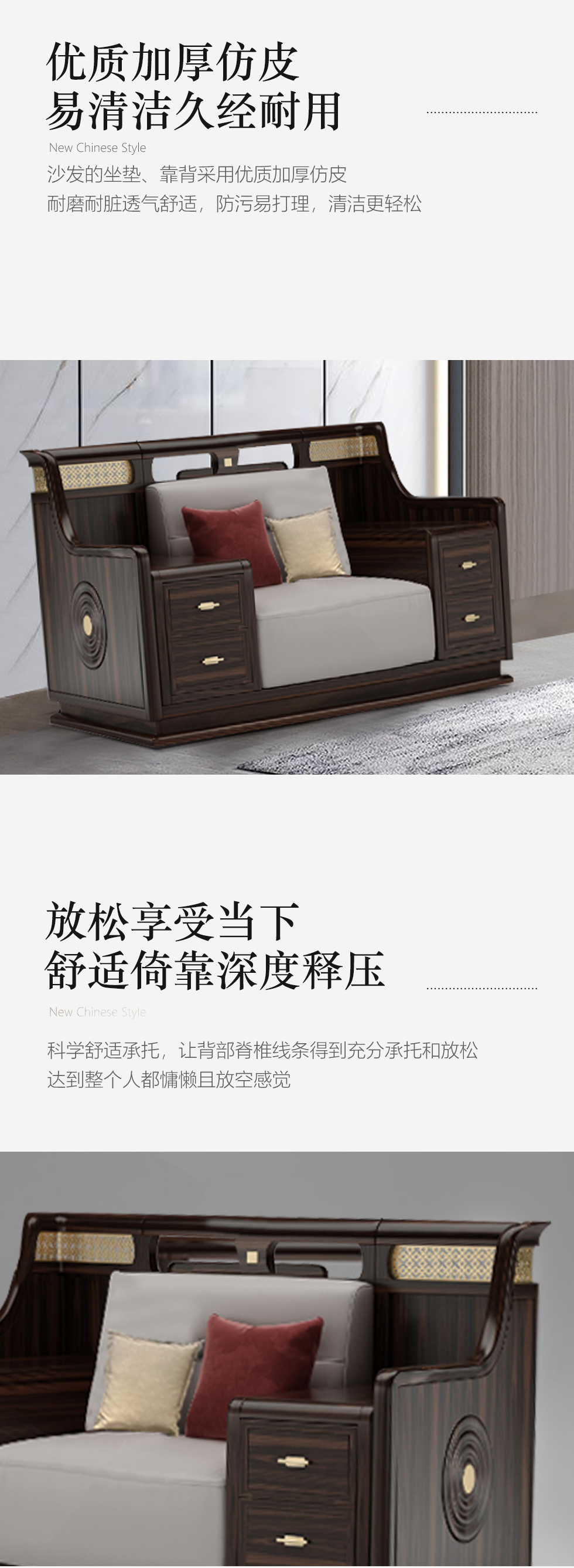 美檀家居 新中式 进口黑檀木+仿真皮+高回弹海绵+多层实木板+电镀五金 黑檀色 三人位 2.66米沙发¥34633
