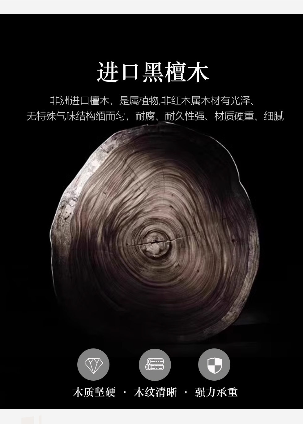 美檀家居 新中式 进口黑檀木+仿真皮+高回弹海绵+多层实木板+电镀五金 黑檀色 1+2+3 沙发¥11503