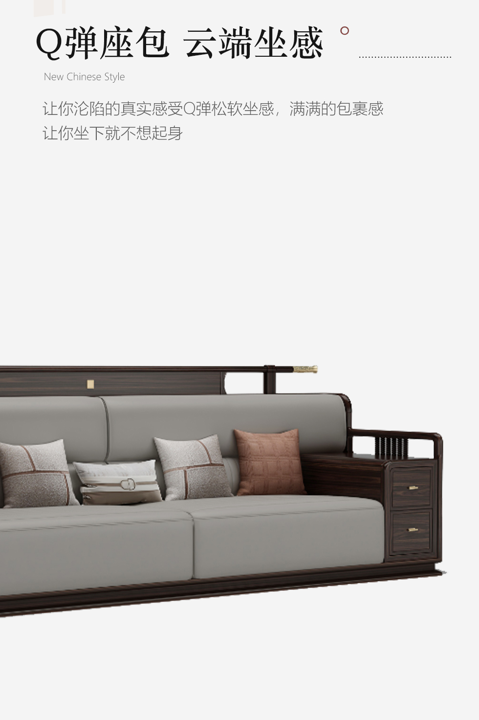 美檀家居 新中式 进口黑檀木+布艺+高回弹海绵+多层实木板+电镀五金 图片色 1+2+3 沙发