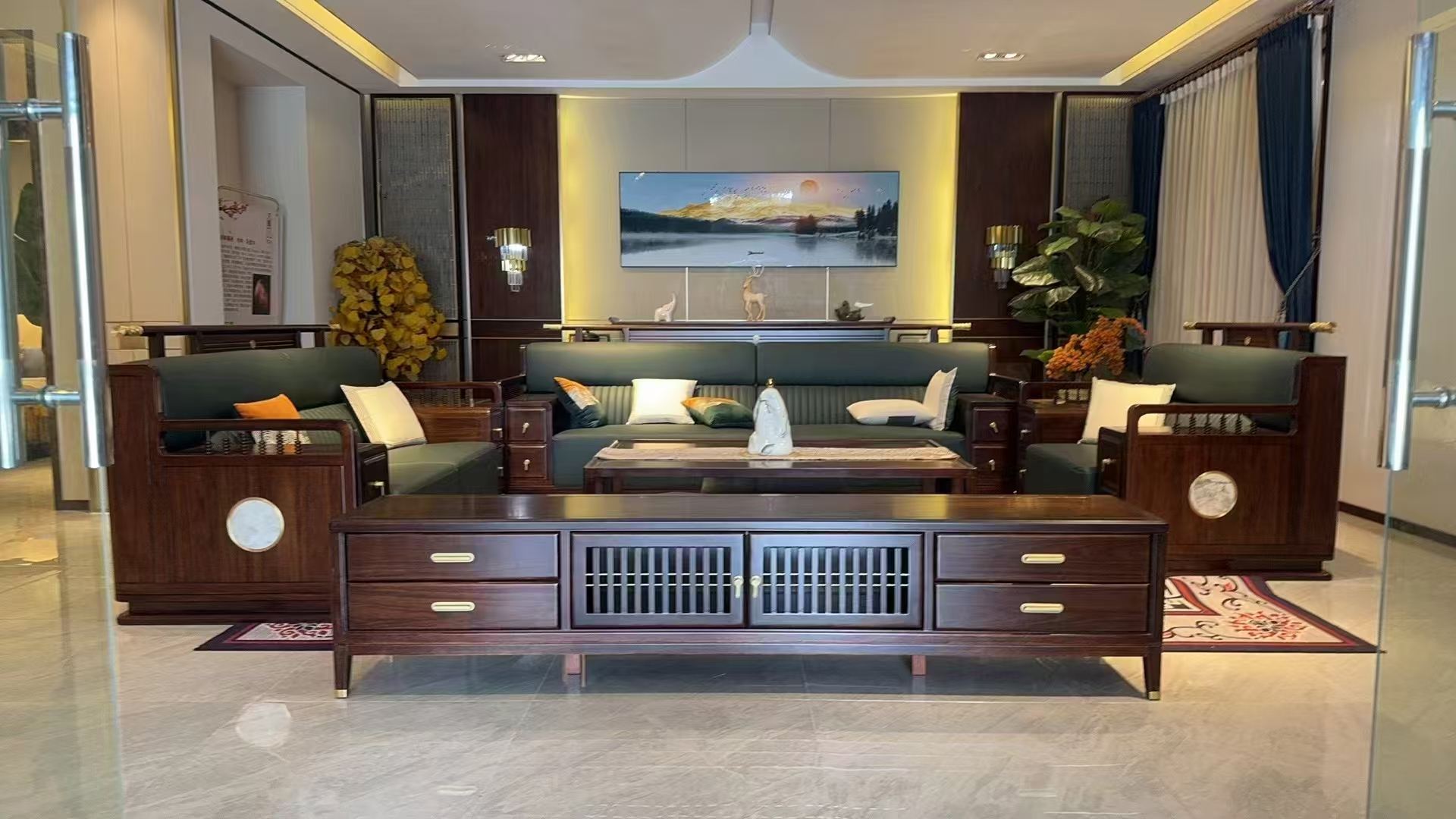 美檀家居 新中式 进口黑檀木+布艺+高回弹海绵+多层实木板+电镀五金 图片色 1+2+3 沙发
