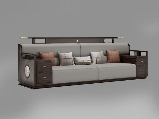 美檀家居 新中式 进口黑檀木+布艺+高回弹海绵+多层实木板+电镀五金 图片色 1+2+3 沙发