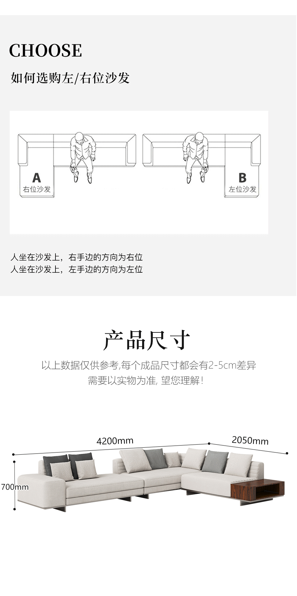 德卡图 现代简约 松木+多层板板+棉麻布+高回弹海绵+靠包羽绒填充+胶脚 3+转+左贵妃 4.2米沙发