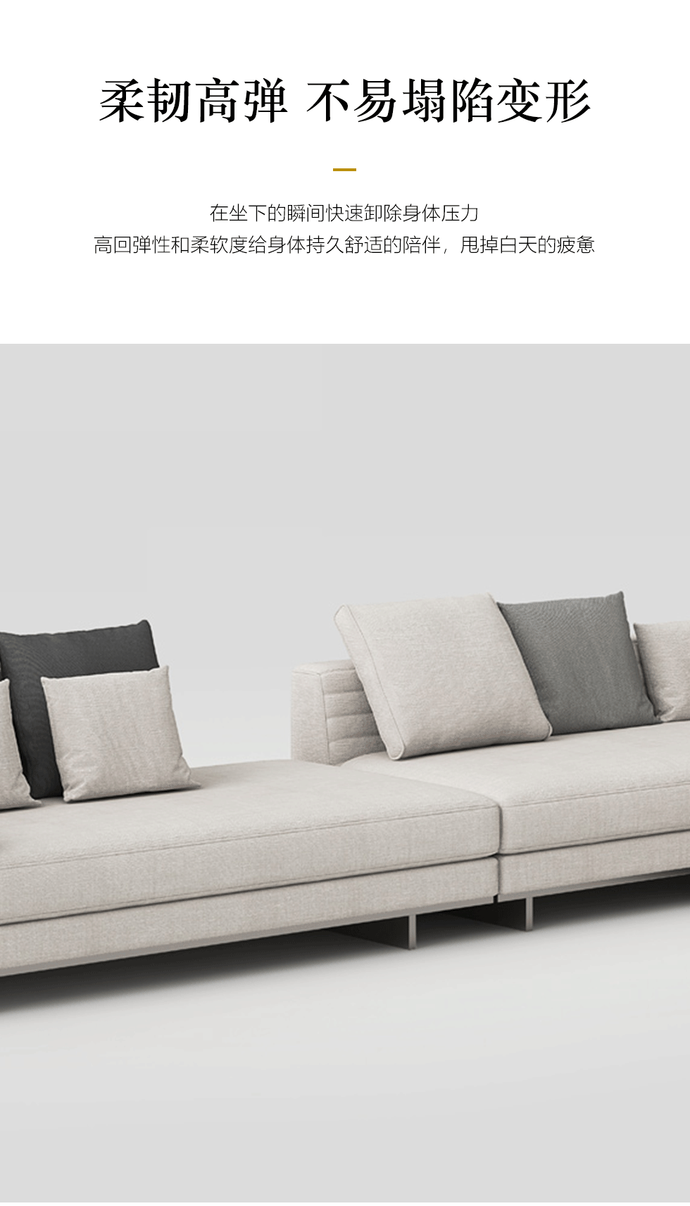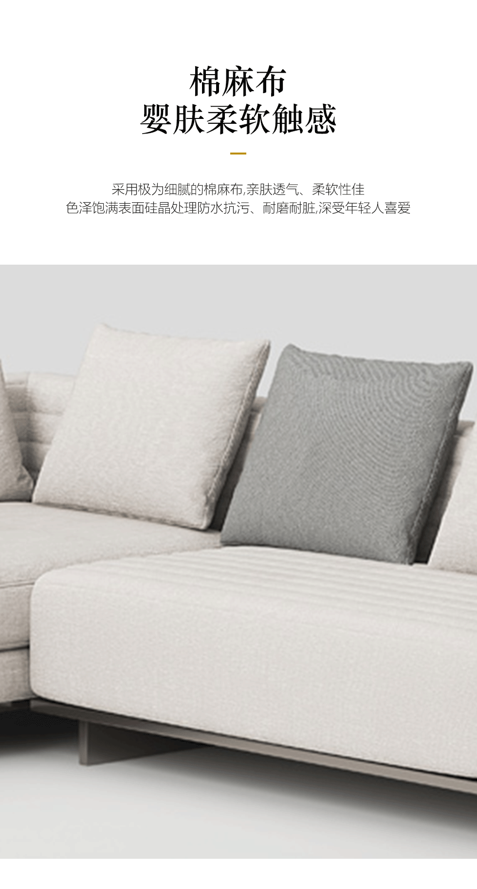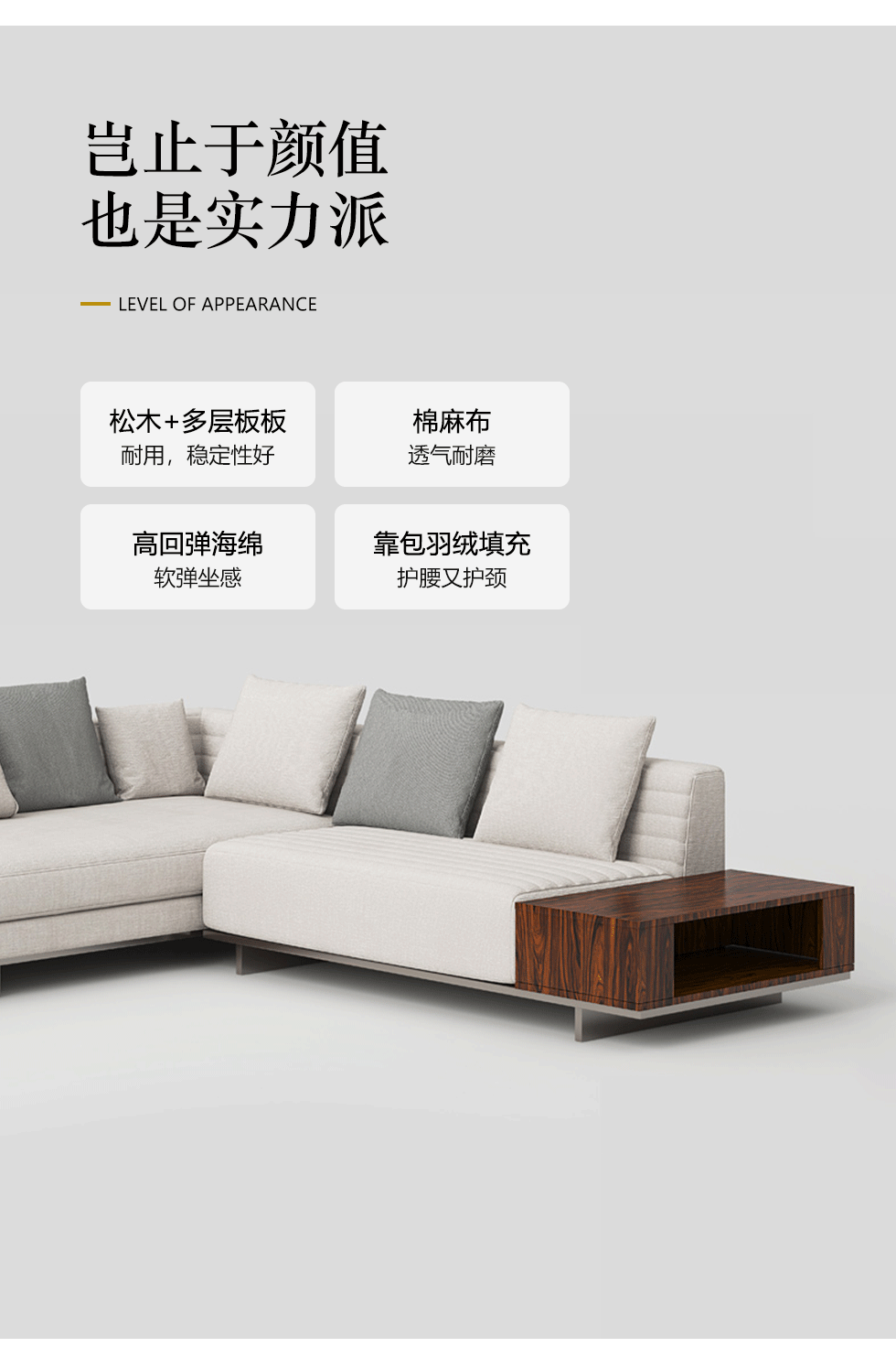 德卡图 现代简约 松木+多层板板+棉麻布+靠包羽绒填充+高回弹海绵+胶脚 单扶单位+左转角 3.8米沙发