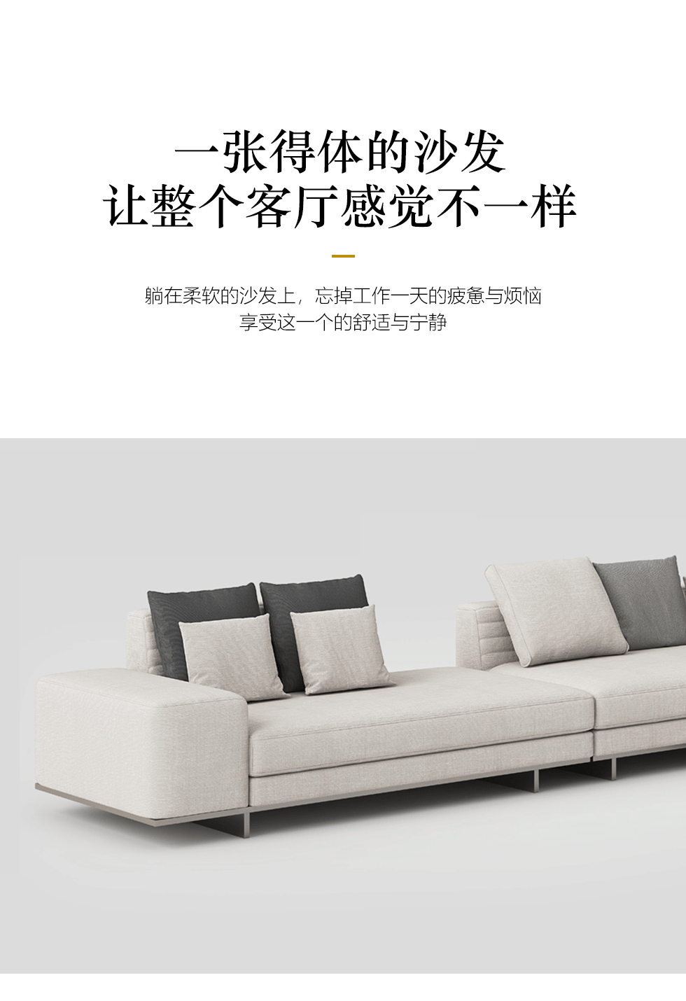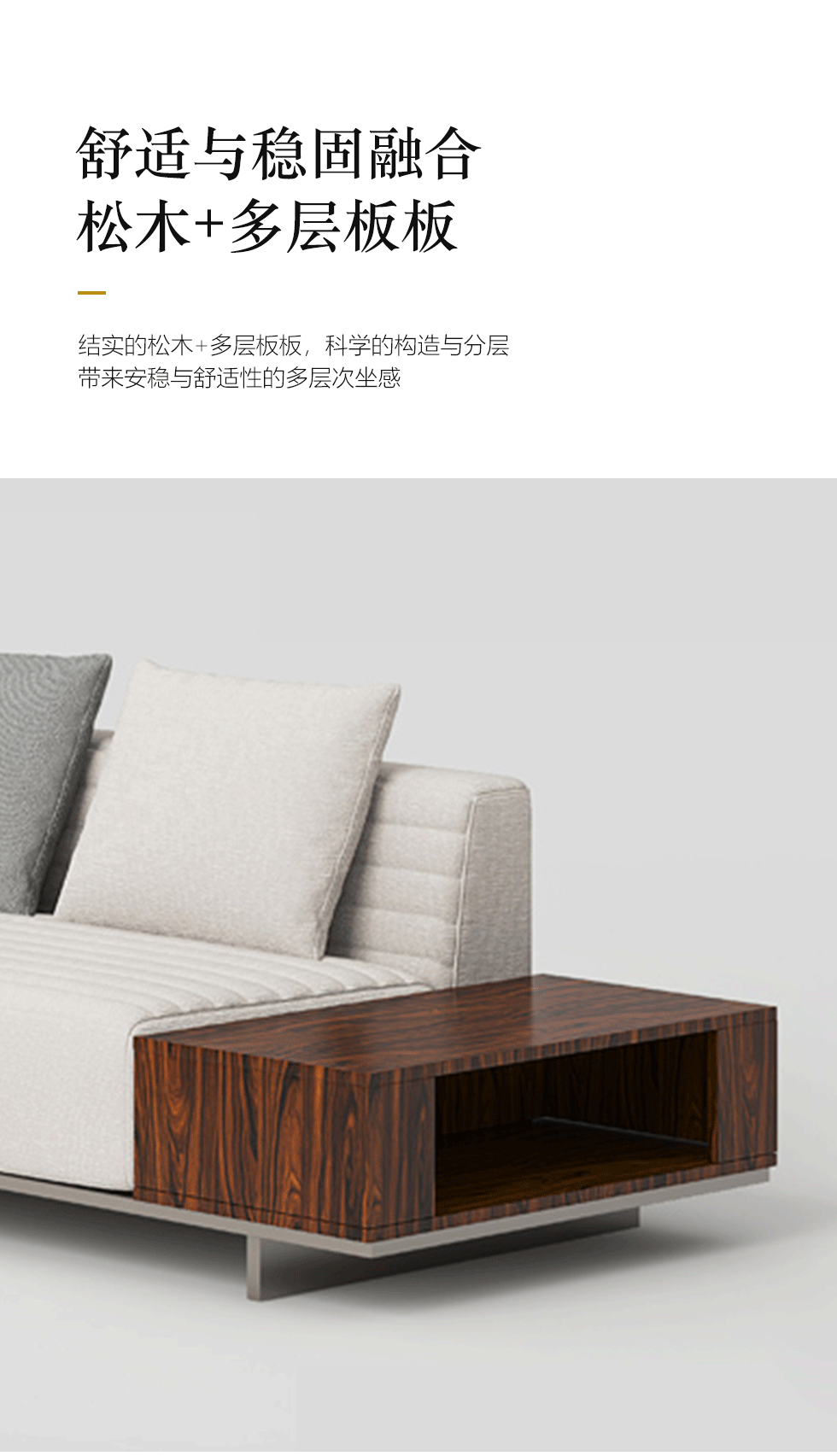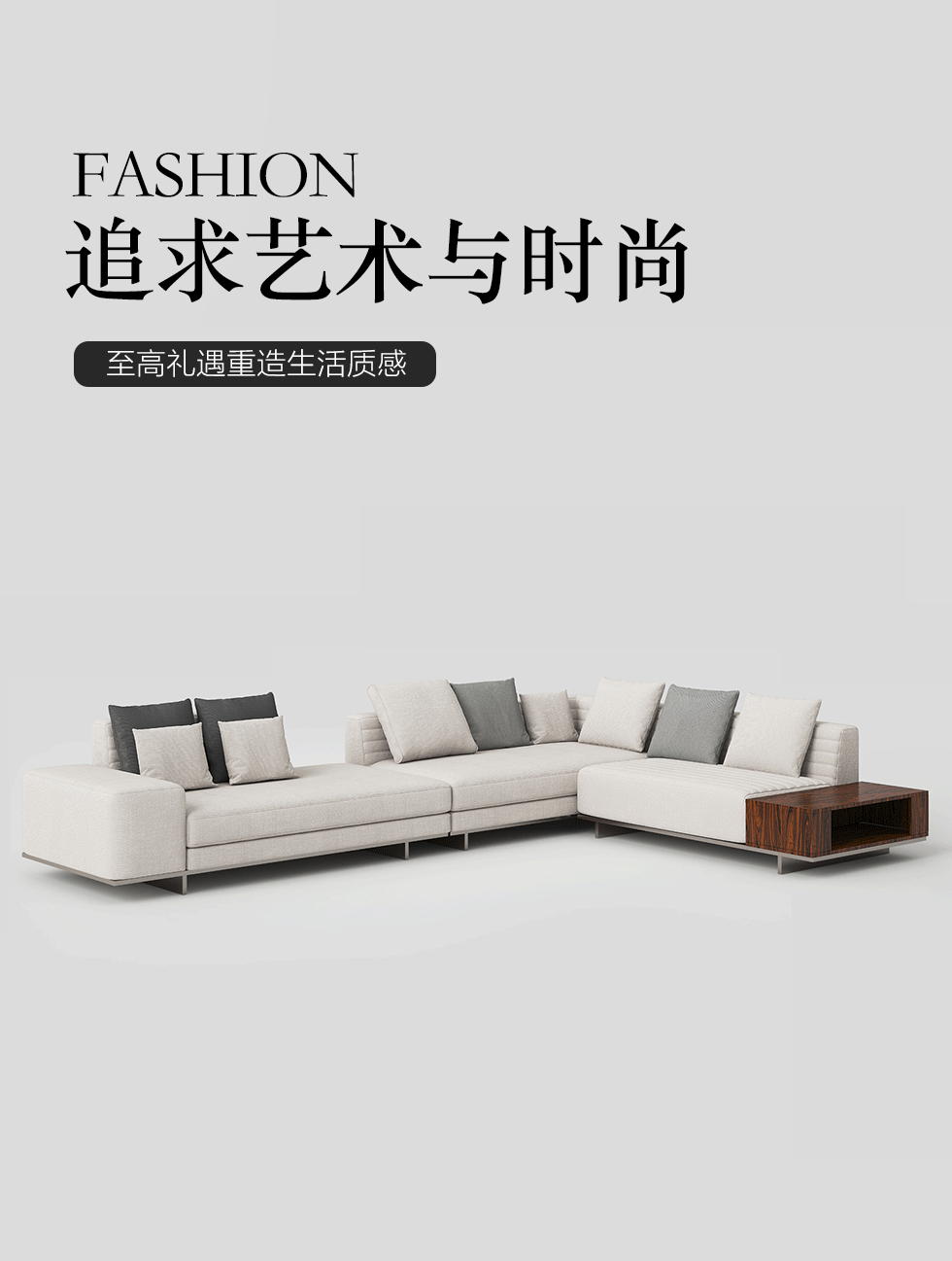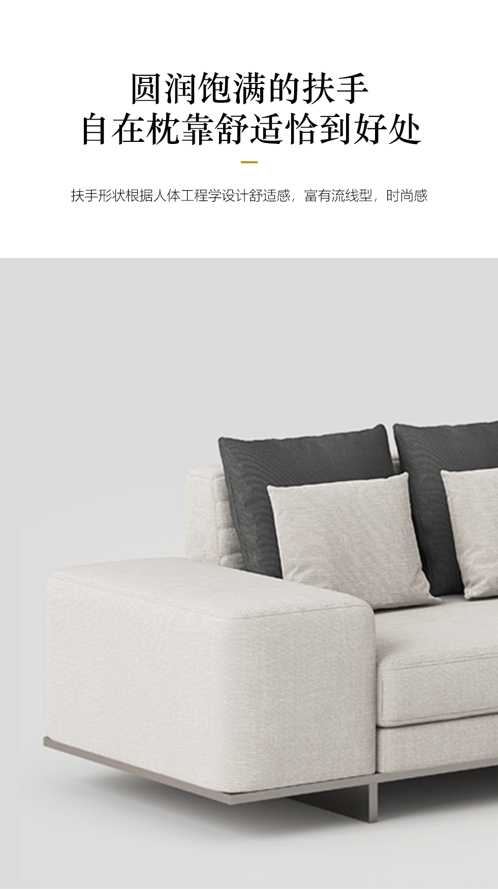 德卡图 现代简约 松木+多层板板+棉麻布+靠包羽绒填充+高回弹海绵+胶脚 单扶单位+左转角 3.8米沙发