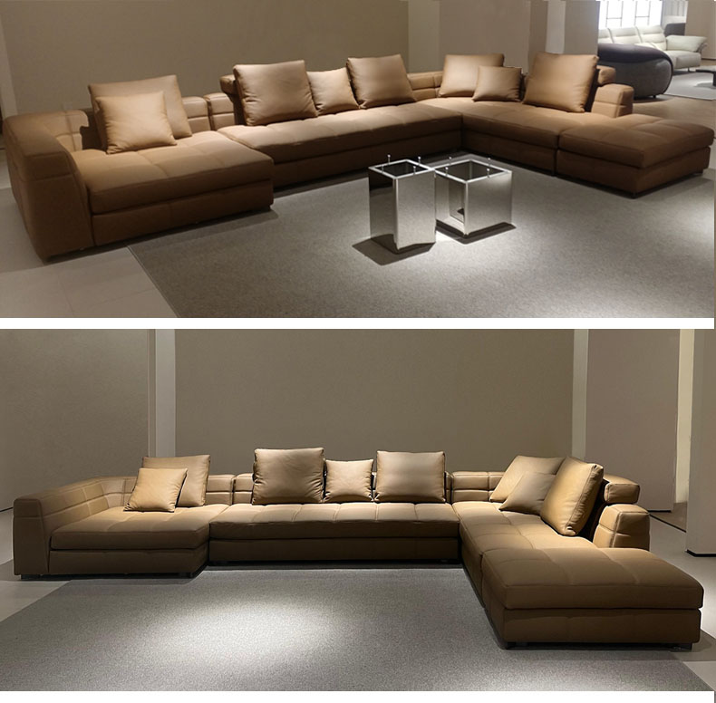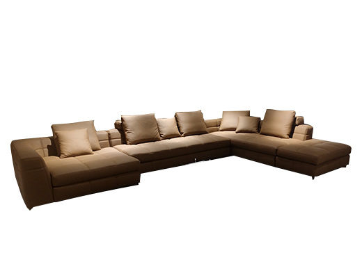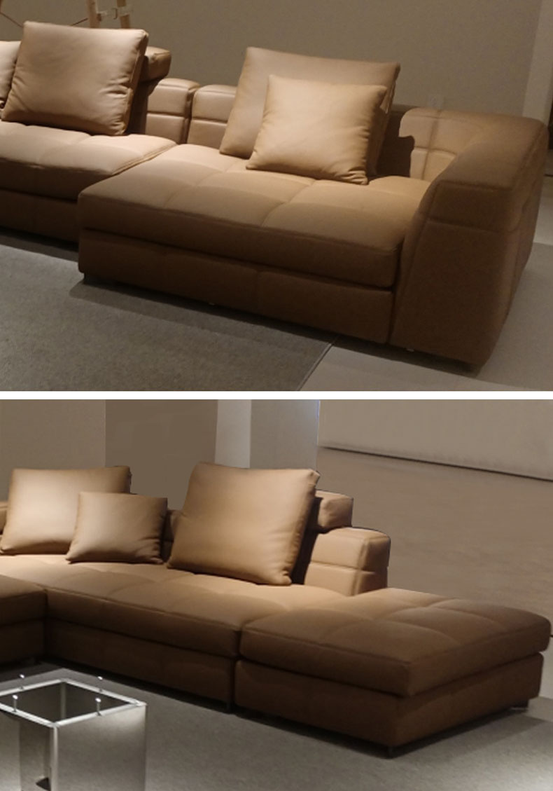 德卡图 现代简约 接触面进口头层牛皮+高密度海绵+俄罗斯进口落叶松框架 1+3+左贵妃位 浅棕色 皮艺转角3.36米沙发¥13013