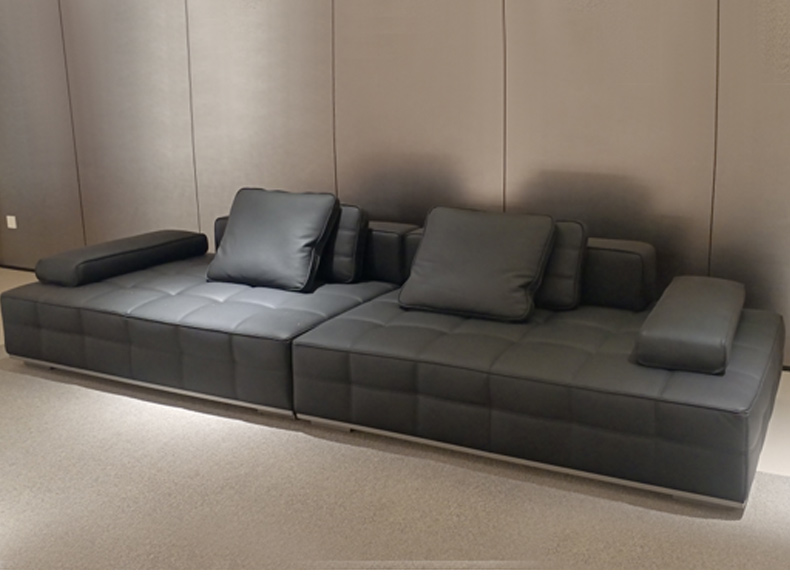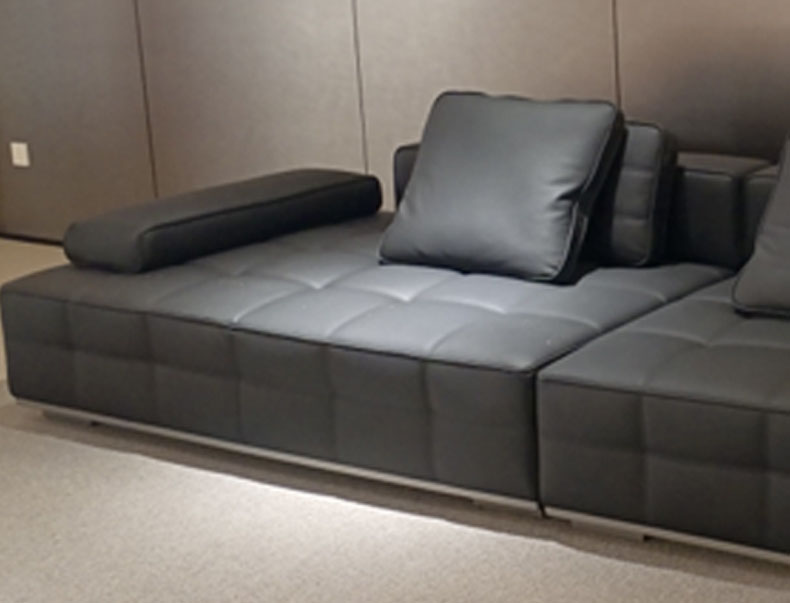 德卡图 现代简约 头层黄牛皮全皮 黑钛拉丝不锈钢五金框架 俄罗斯落叶松+多层板 填充: 靠包羽绒填充+高回弹海绵 四人位(固定坐包)3.1米沙发¥13551