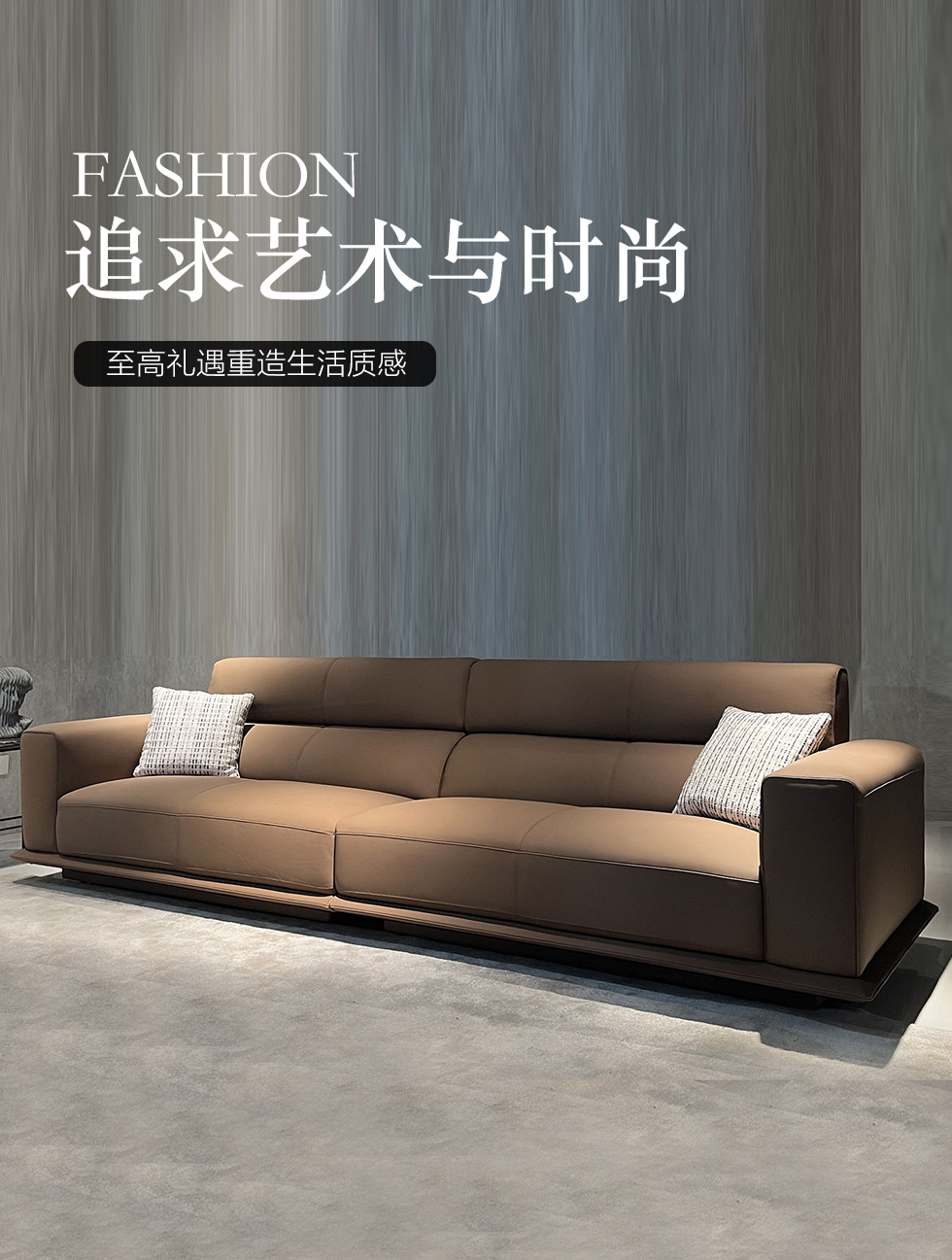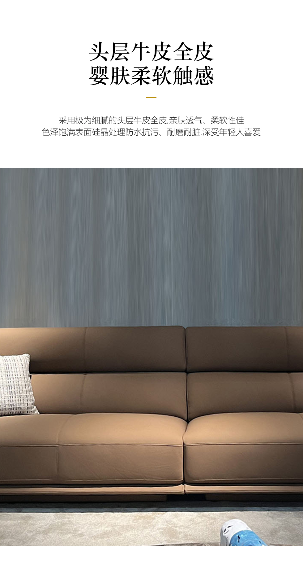 德卡图 现代简约 松木+多层板板+头层牛皮全真皮+高回弹海绵+靠包羽绒填充+胶脚 四人位 2.9米沙发¥17901