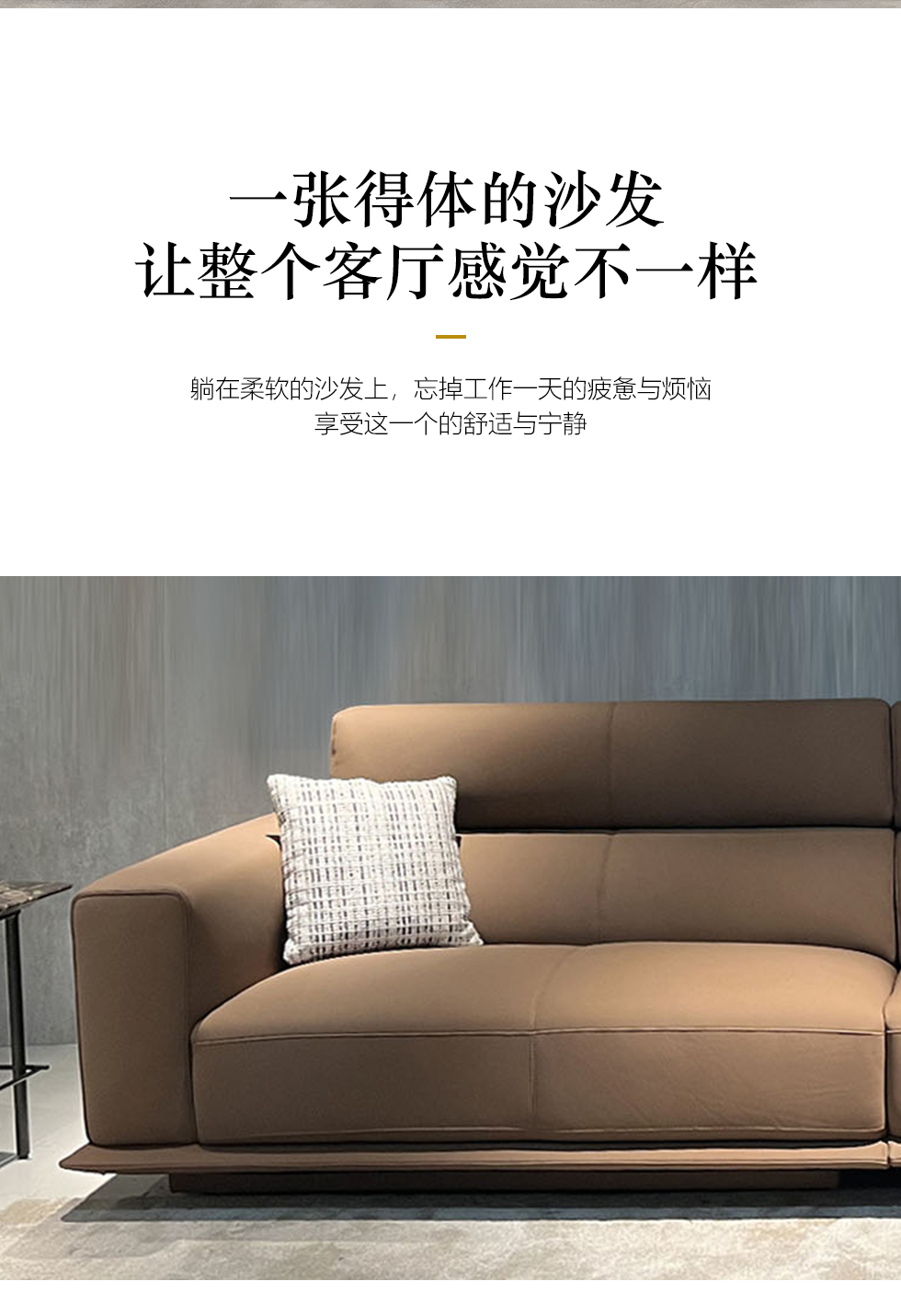 德卡图 现代简约 松木+多层板板+头层牛皮全皮+高回弹海绵+靠包羽绒填充+五金脚 四人位 3.1米沙发¥11137