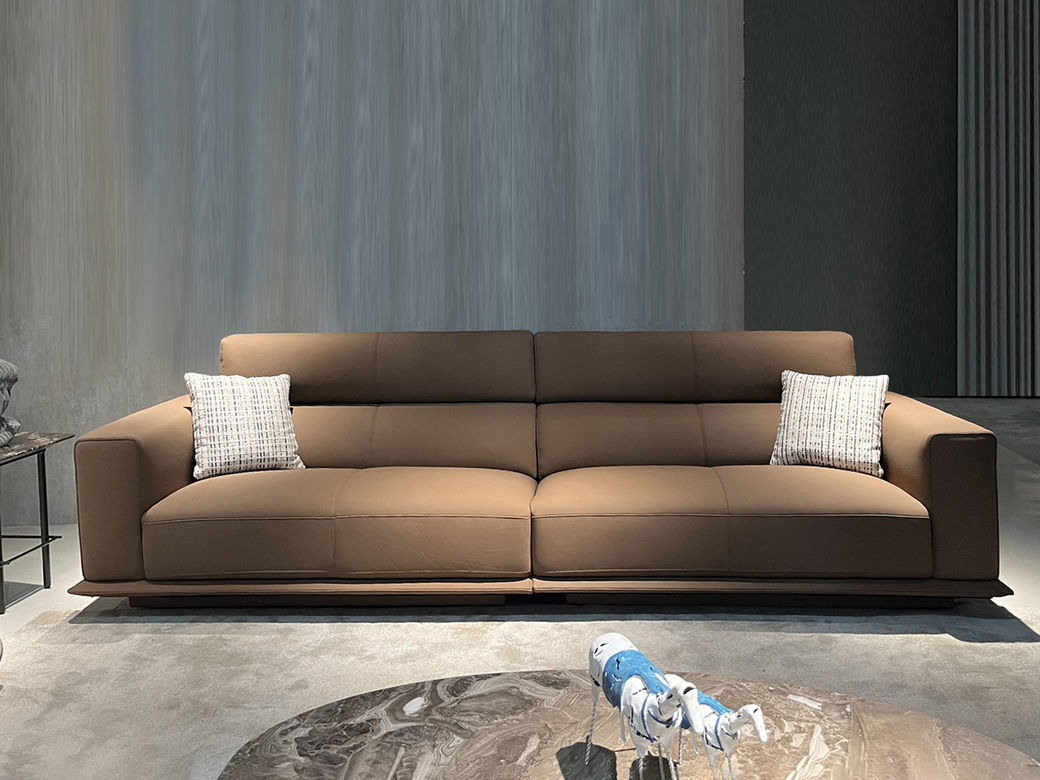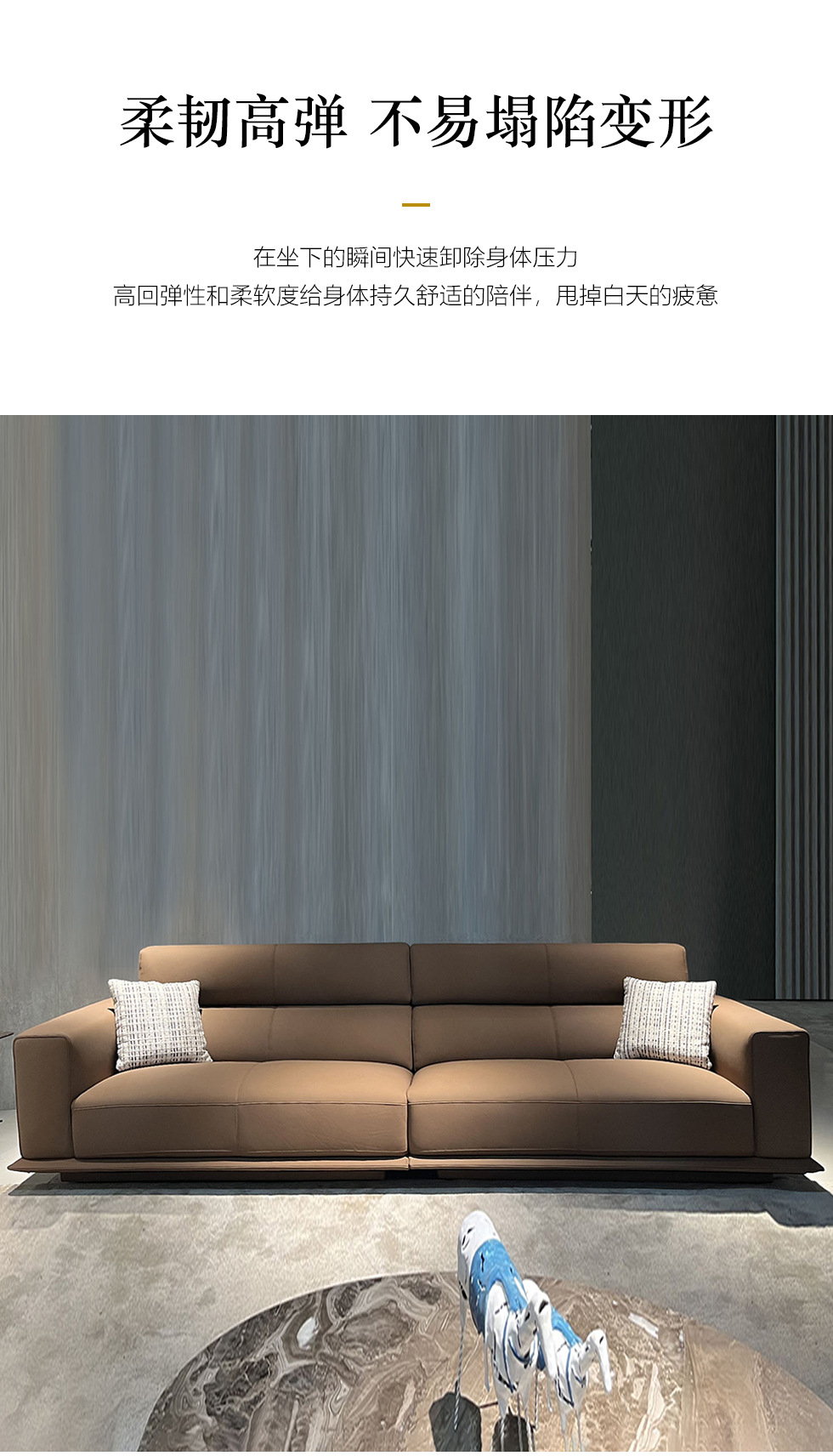 德卡图 现代简约 头层黄牛皮全皮 黑钛拉丝不锈钢五金框架 俄罗斯落叶松+多层板 填充: 靠包羽绒填充+高回弹海绵 四人位(固定坐包)3.1米沙发¥22720