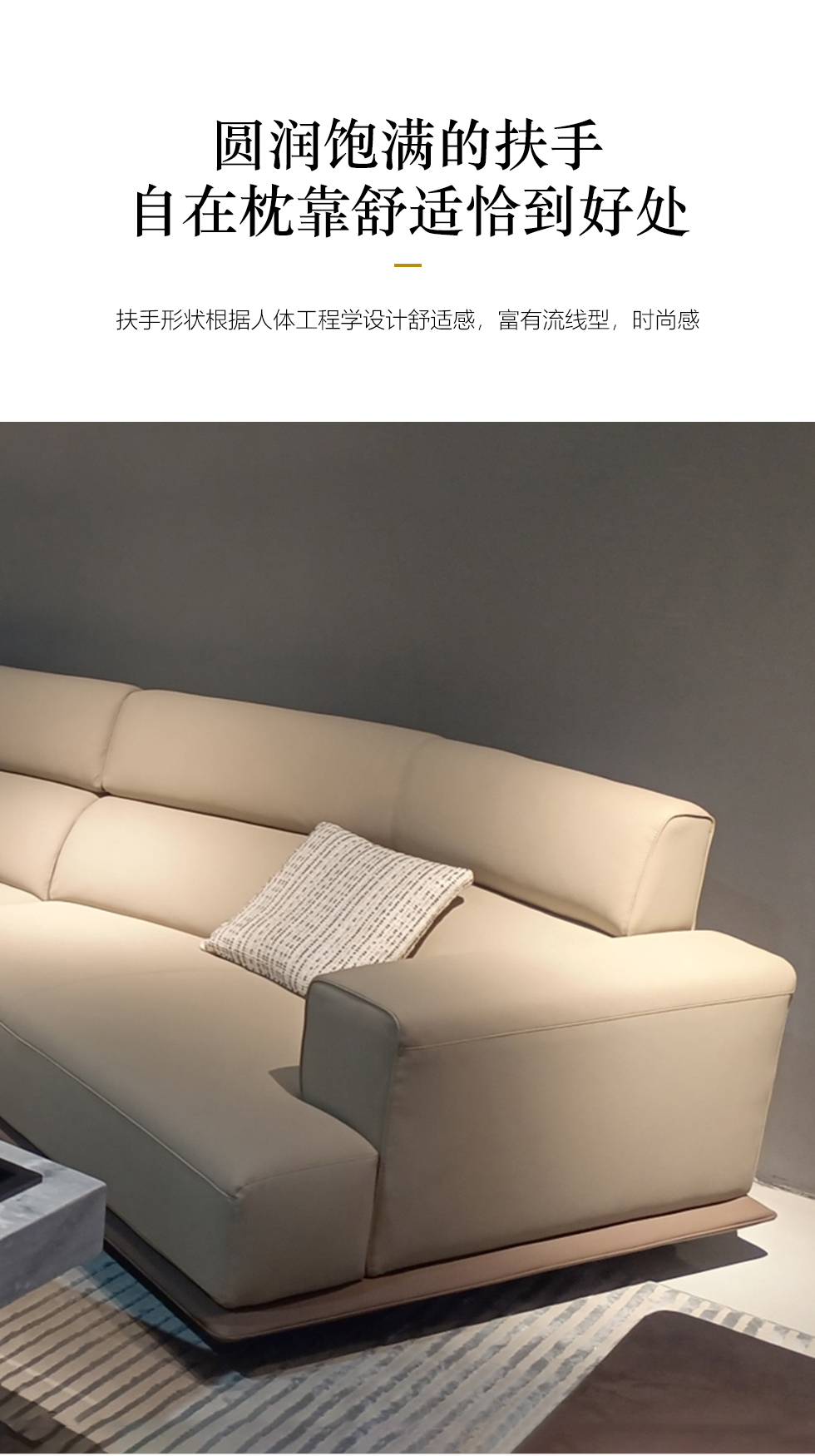 德卡图 现代简约 松木+多层板板+接触面头层牛皮+仿皮+高回弹海绵 3+右贵妃 3.53米沙发