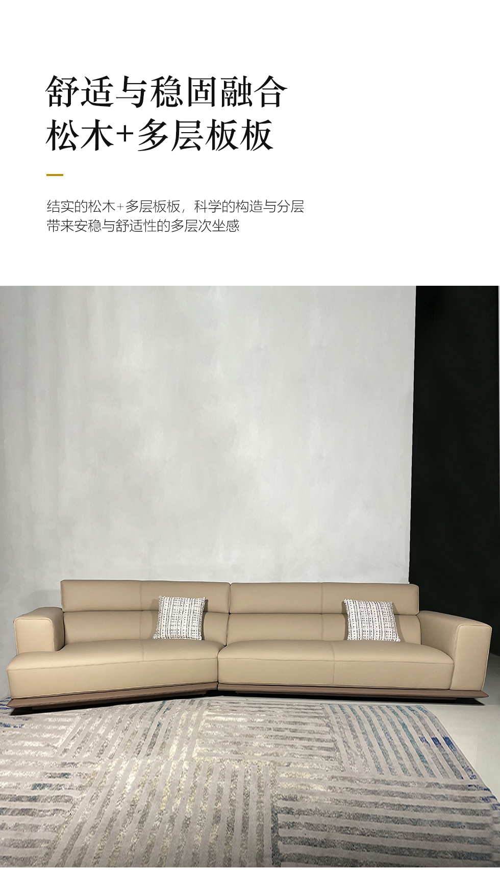 德卡图 现代简约 接触面进口头层牛皮+高密度海绵+俄罗斯进口落叶松框架 1+3+左贵妃位 浅棕色 皮艺转角3.36米沙发¥11680