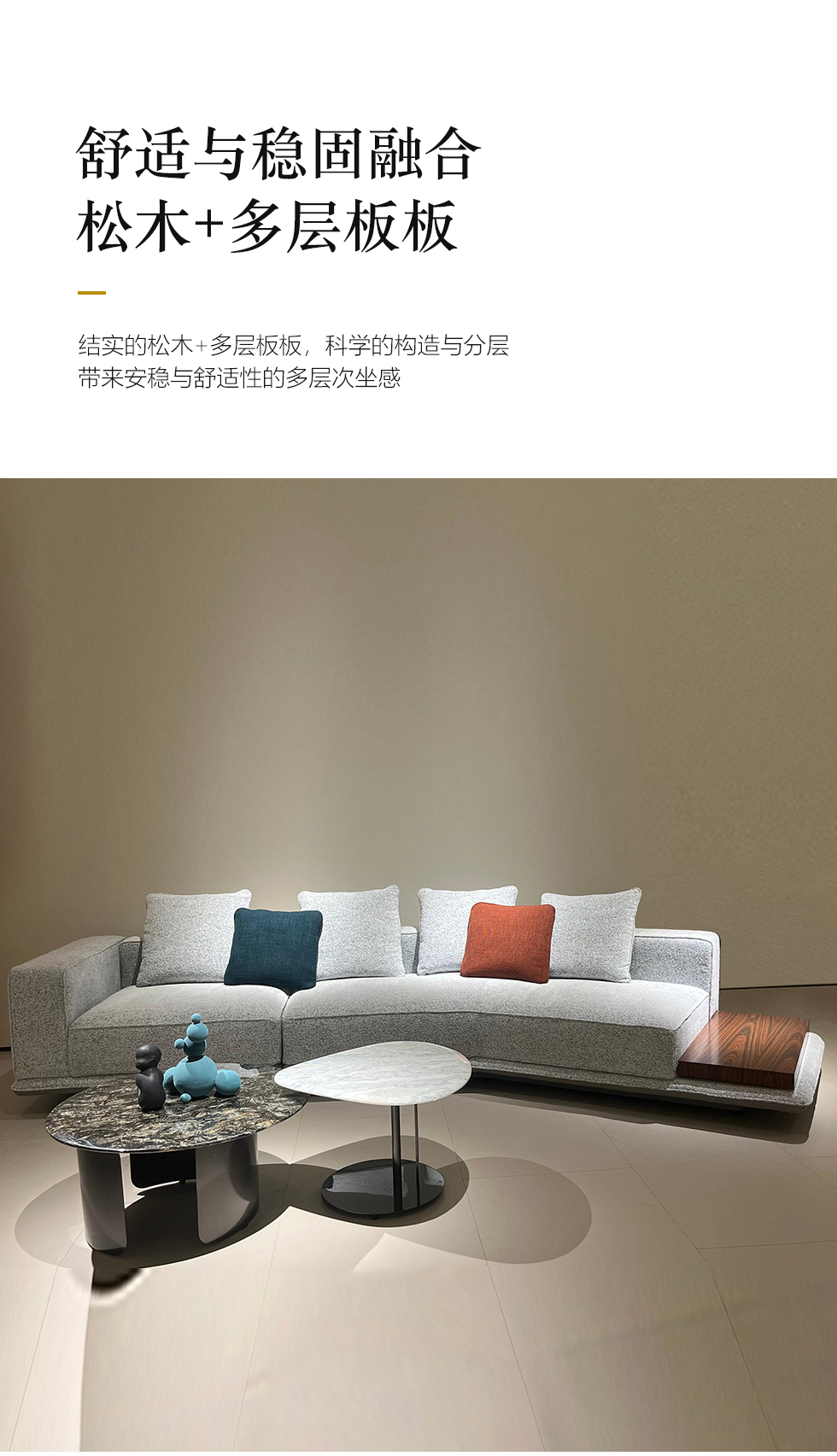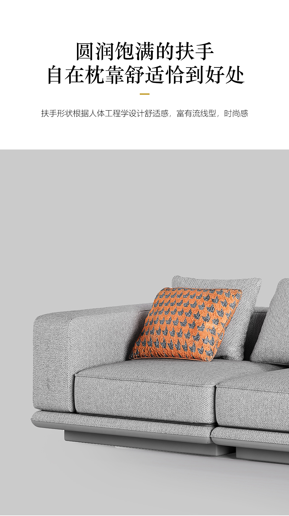 德卡图 现代简约 松木+多层板板+棉麻布+靠包羽绒填充+高回弹海绵+胶脚 单扶单位+左转角 3.8米沙发