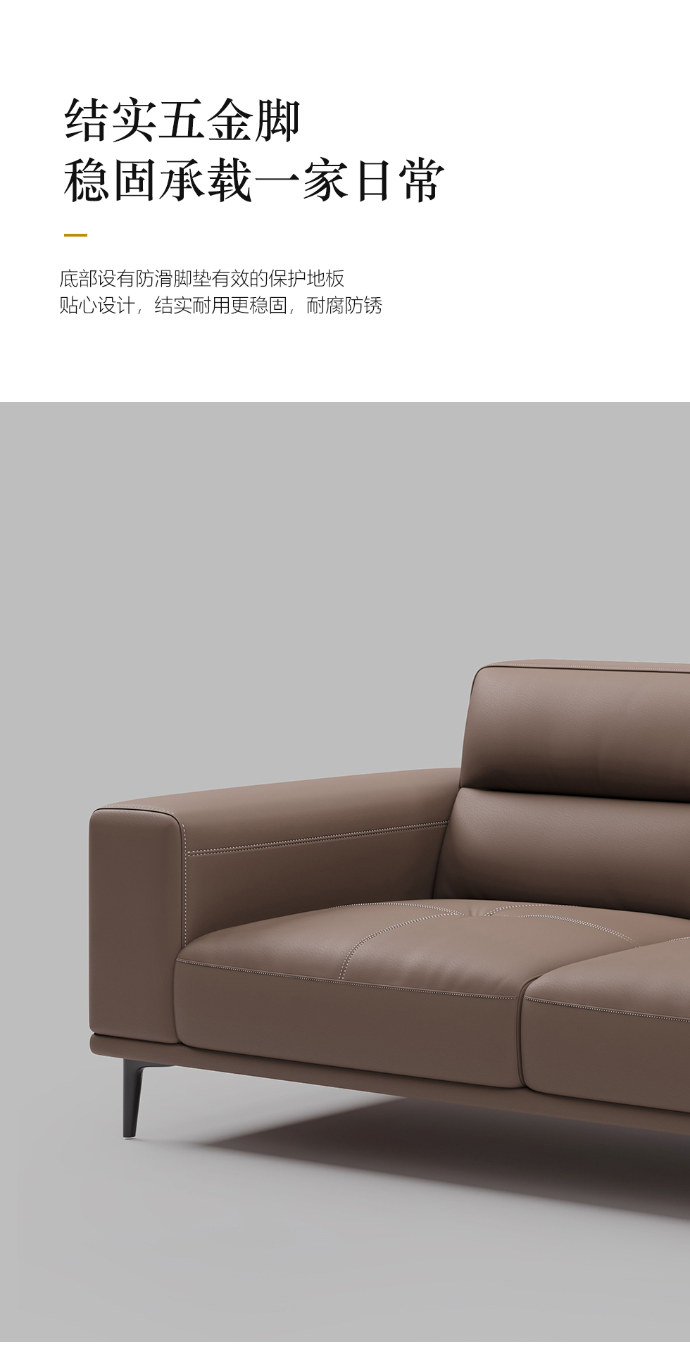 德卡图 现代简约 头层黄牛皮全皮 黑钛拉丝不锈钢五金框架 俄罗斯落叶松+多层板 填充: 靠包羽绒填充+高回弹海绵 四人位(固定坐包)3.1米沙发¥22720