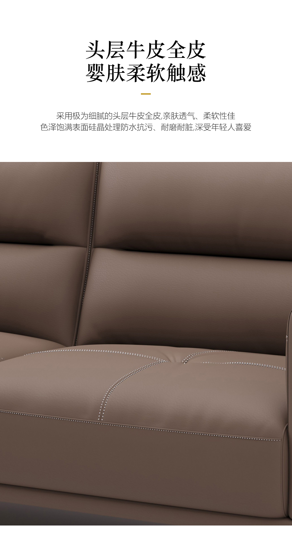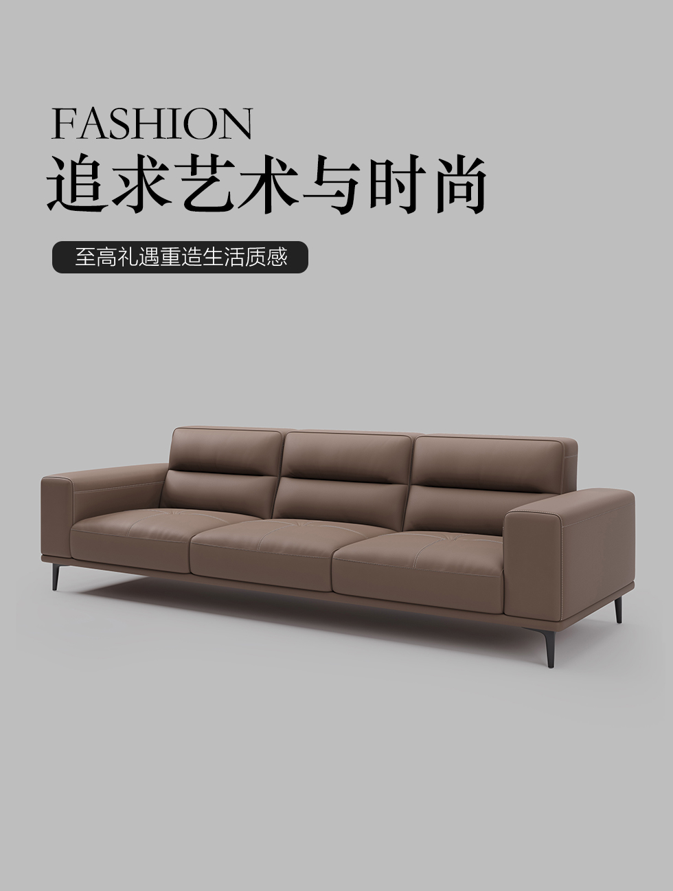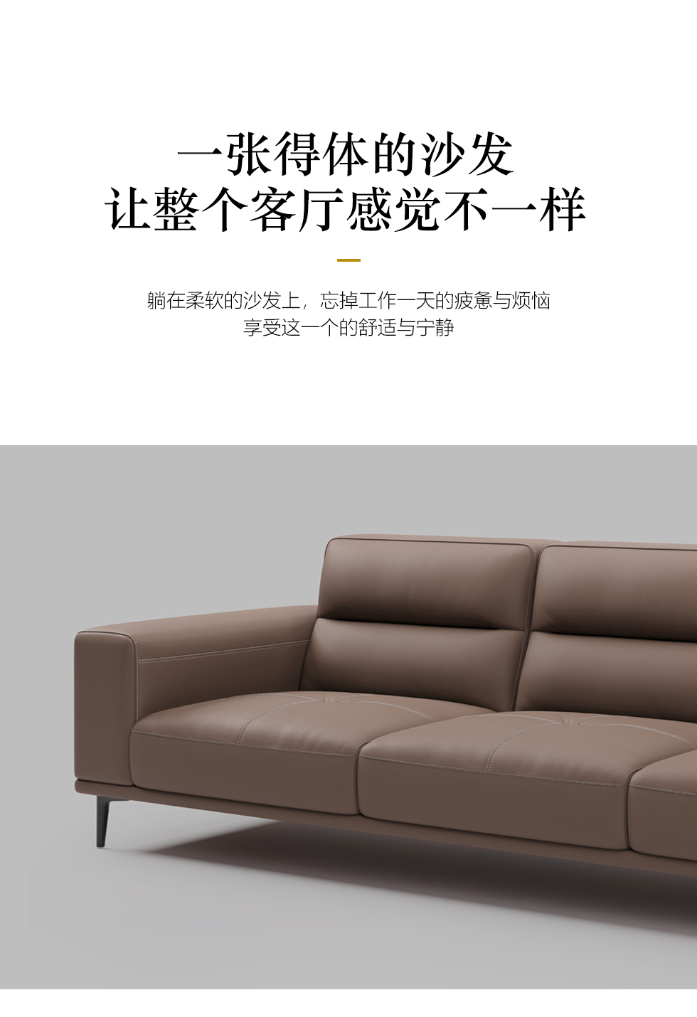 德卡图 现代简约 松木+多层板板+头层牛皮全皮+高回弹海绵+靠包羽绒填充+五金脚 四人位 3.1米沙发¥11137