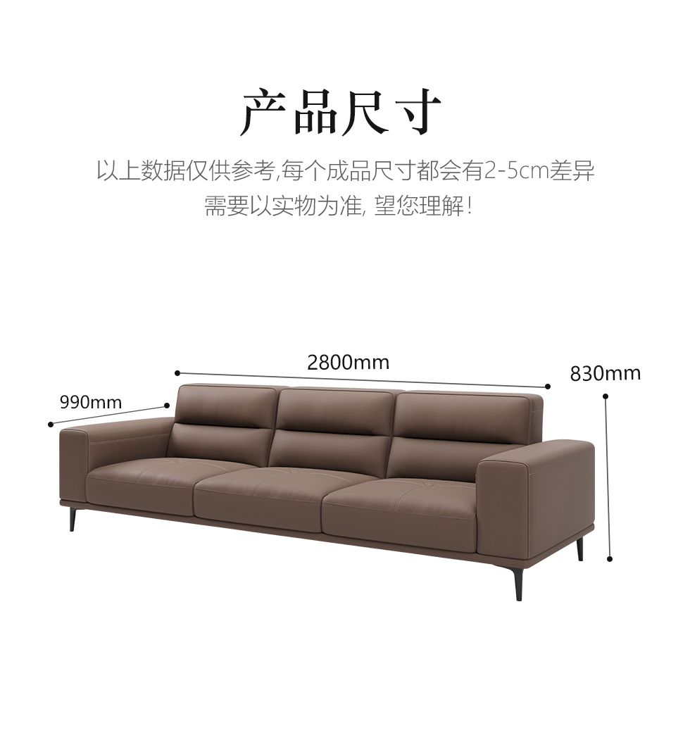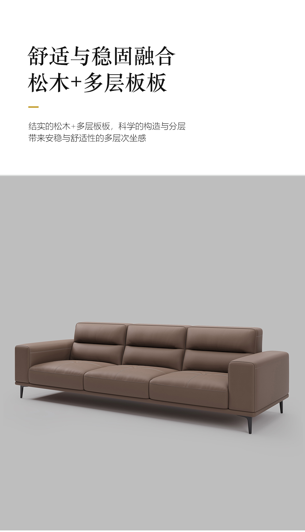 德卡图 现代简约 松木+多层板板+头层牛皮全皮+高回弹海绵+五金脚 四人位 2.8米沙发