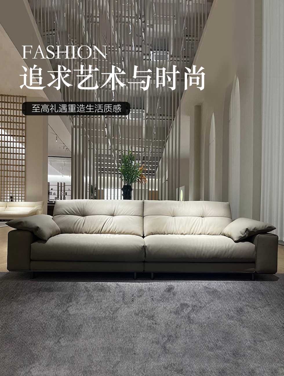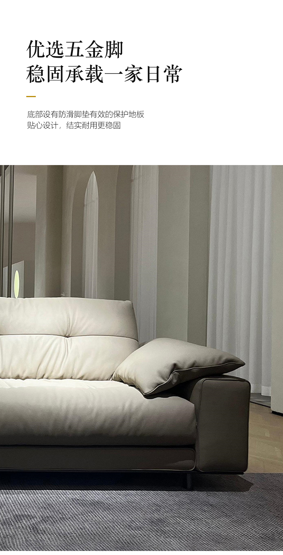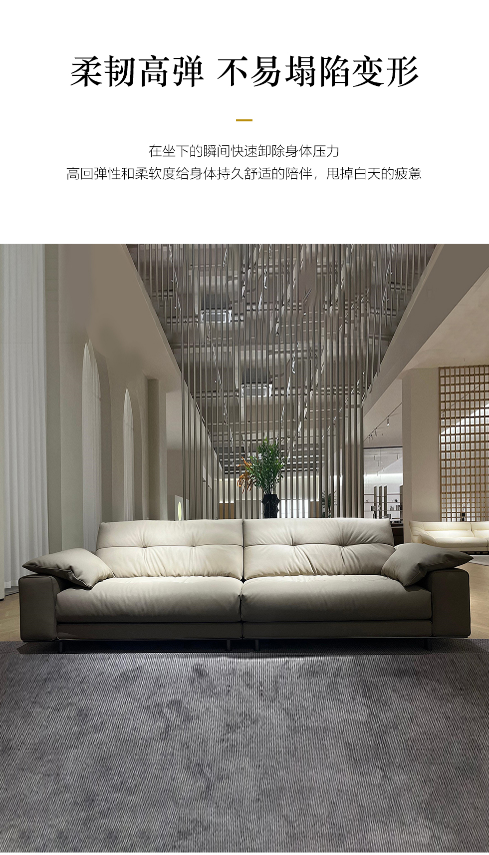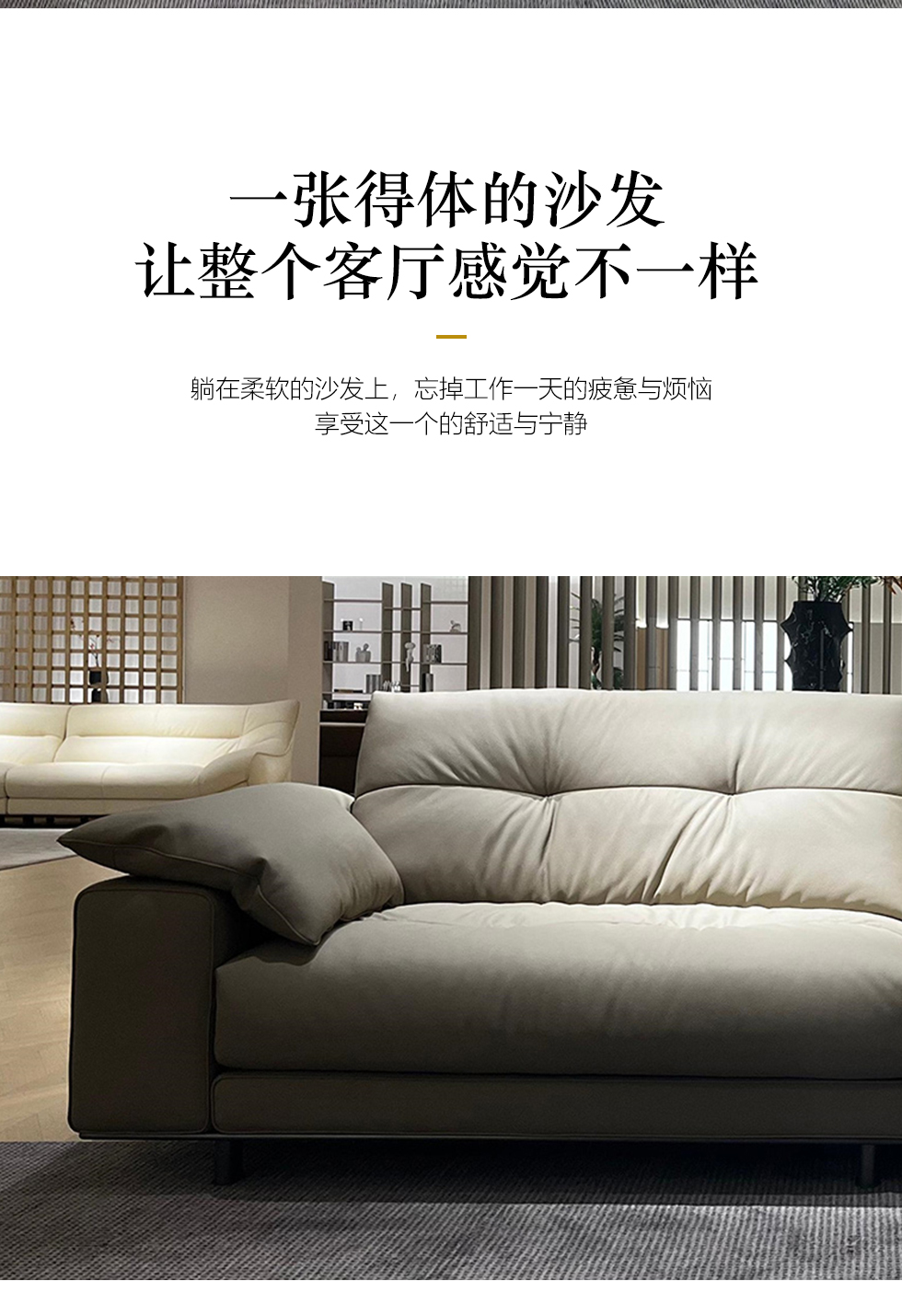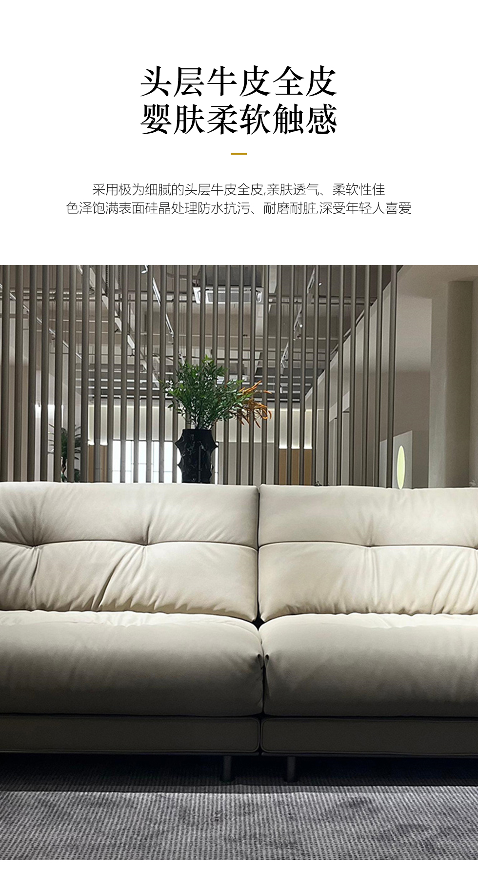 德卡图 现代简约 松木+多层板板+头层牛皮全皮+高回弹海绵+靠包羽绒填充+五金脚 四人位 3.1米沙发¥11137