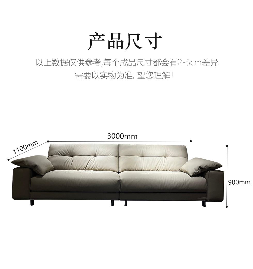 德卡图 现代简约 松木+多层板板+头层牛皮全真皮+高回弹海绵+靠包羽绒填充+胶脚 四人位 2.9米沙发¥17901