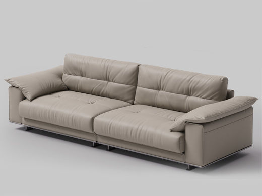 德卡图 现代简约 头层黄牛皮全皮 黑钛拉丝不锈钢五金框架 俄罗斯落叶松+多层板 填充: 靠包羽绒填充+高回弹海绵 四人位(固定坐包)3.1米沙发¥22720
