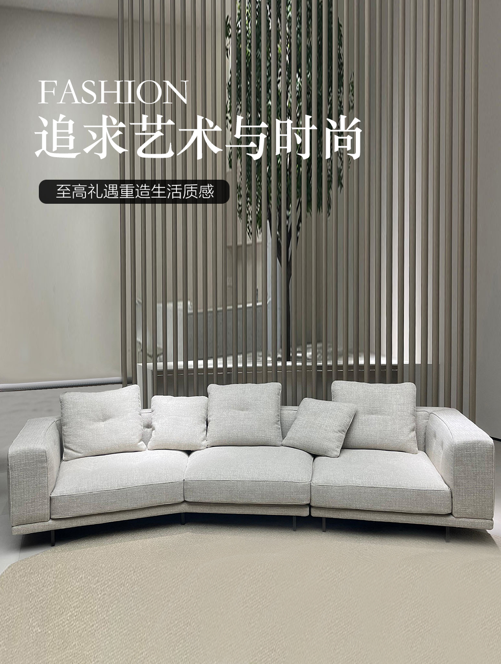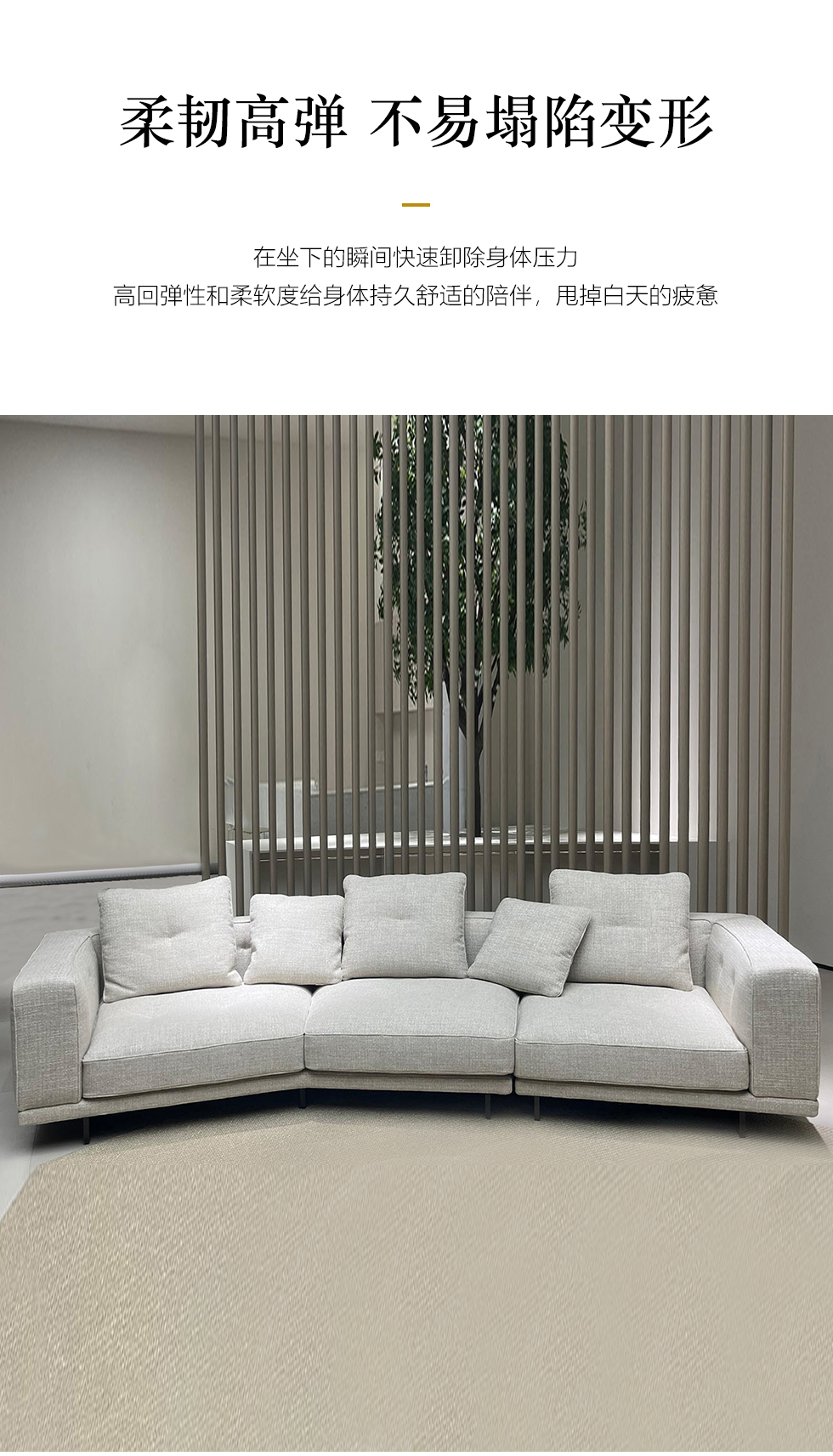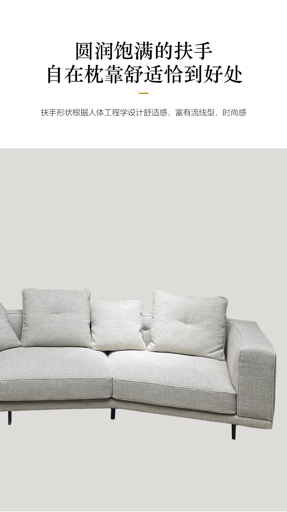 德卡图 现代简约 松木+多层板板+棉麻布+靠包羽绒填充+高回弹海绵+胶脚 单扶单位+左转角 3.8米沙发