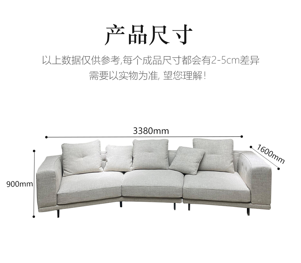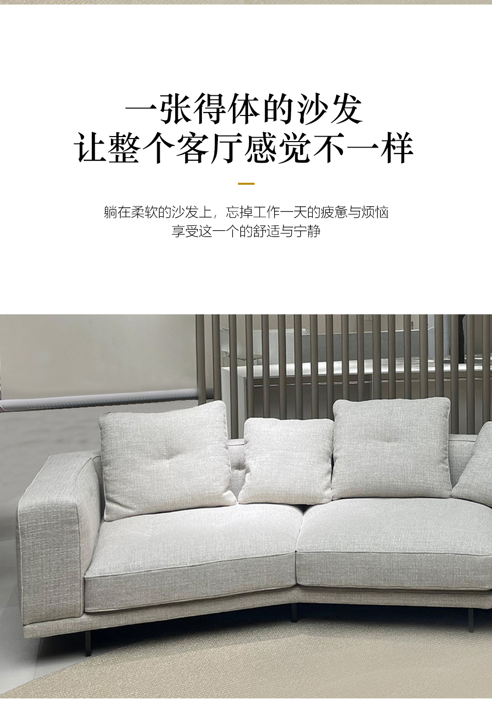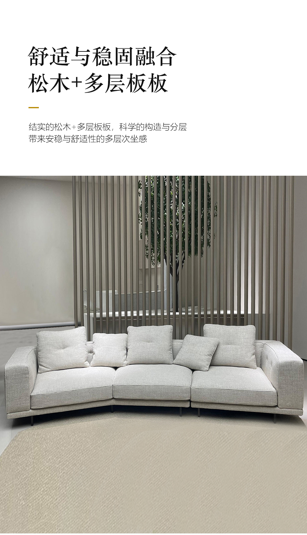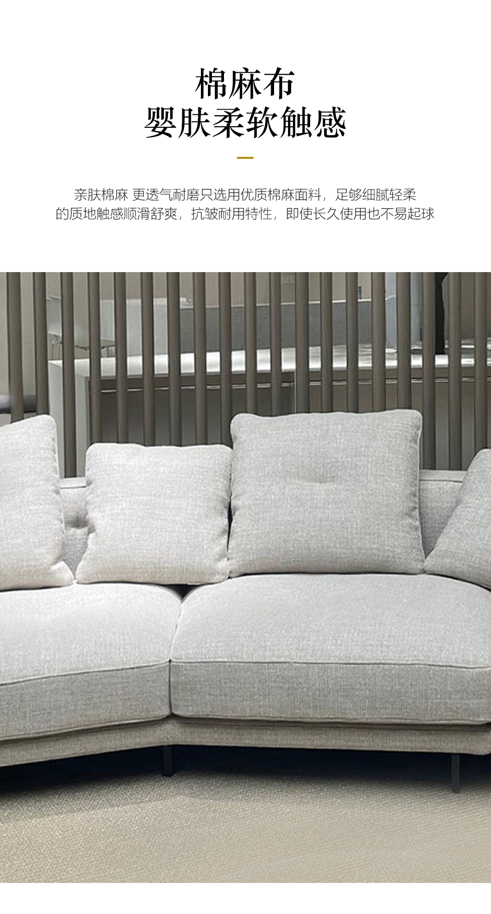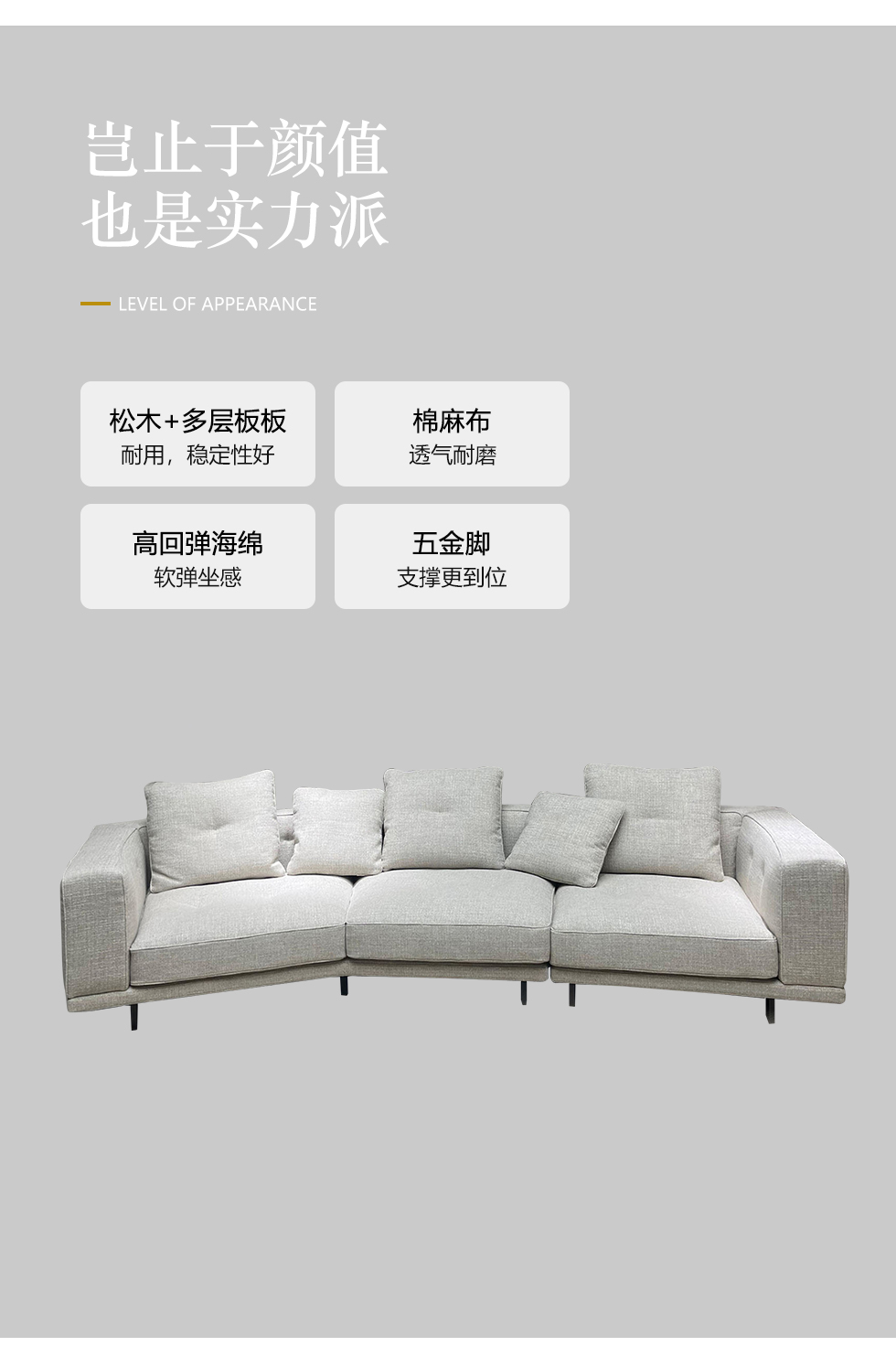 德卡图 现代简约 松木+多层板板+棉麻布+靠包羽绒填充+高回弹海绵+胶脚 单扶单位+左转角 3.8米沙发