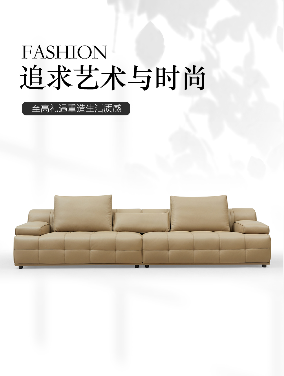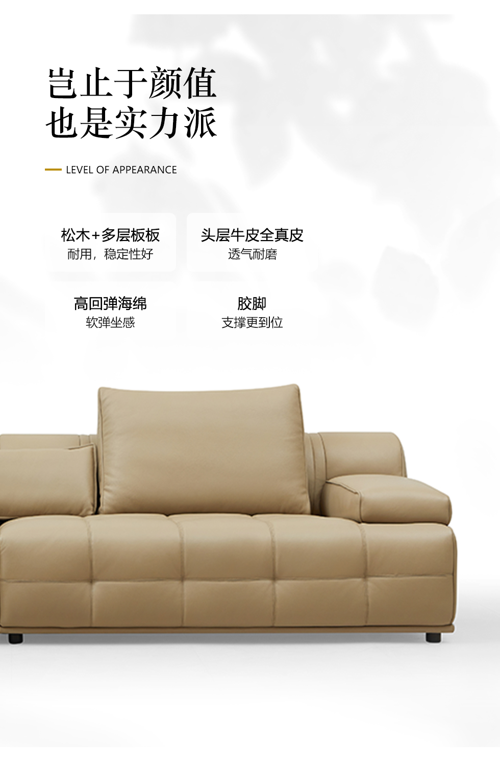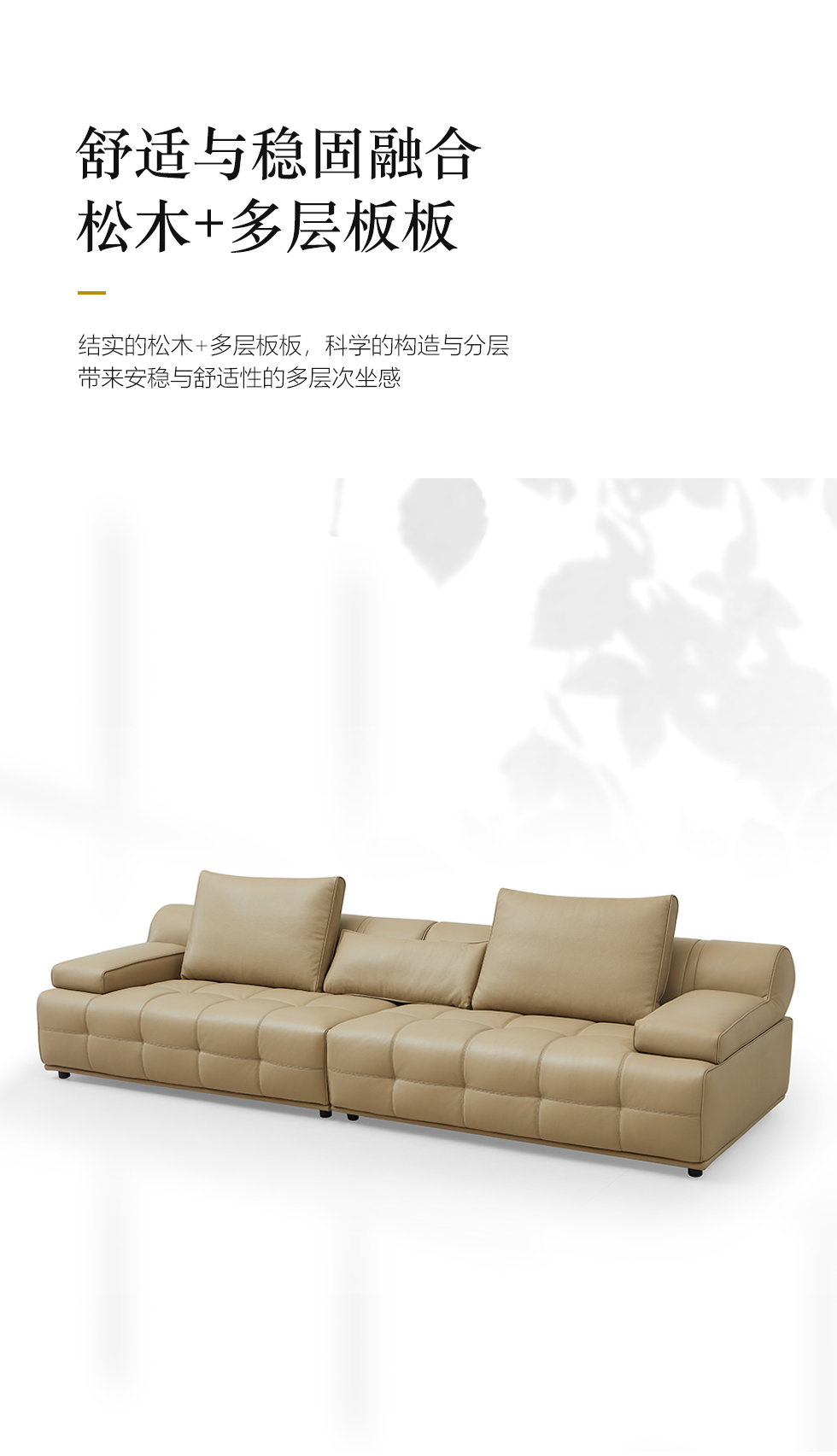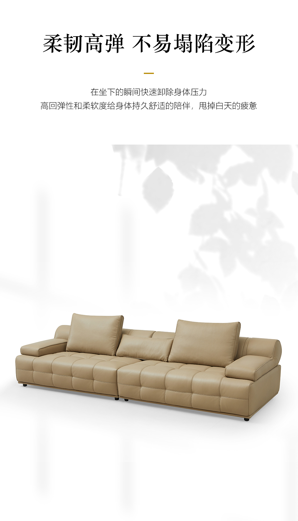 德卡图 现代简约 松木+多层板板+头层牛皮全皮+高回弹海绵+靠包羽绒填充+五金脚 四人位 3.1米沙发¥11137