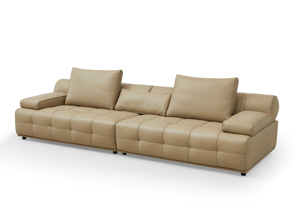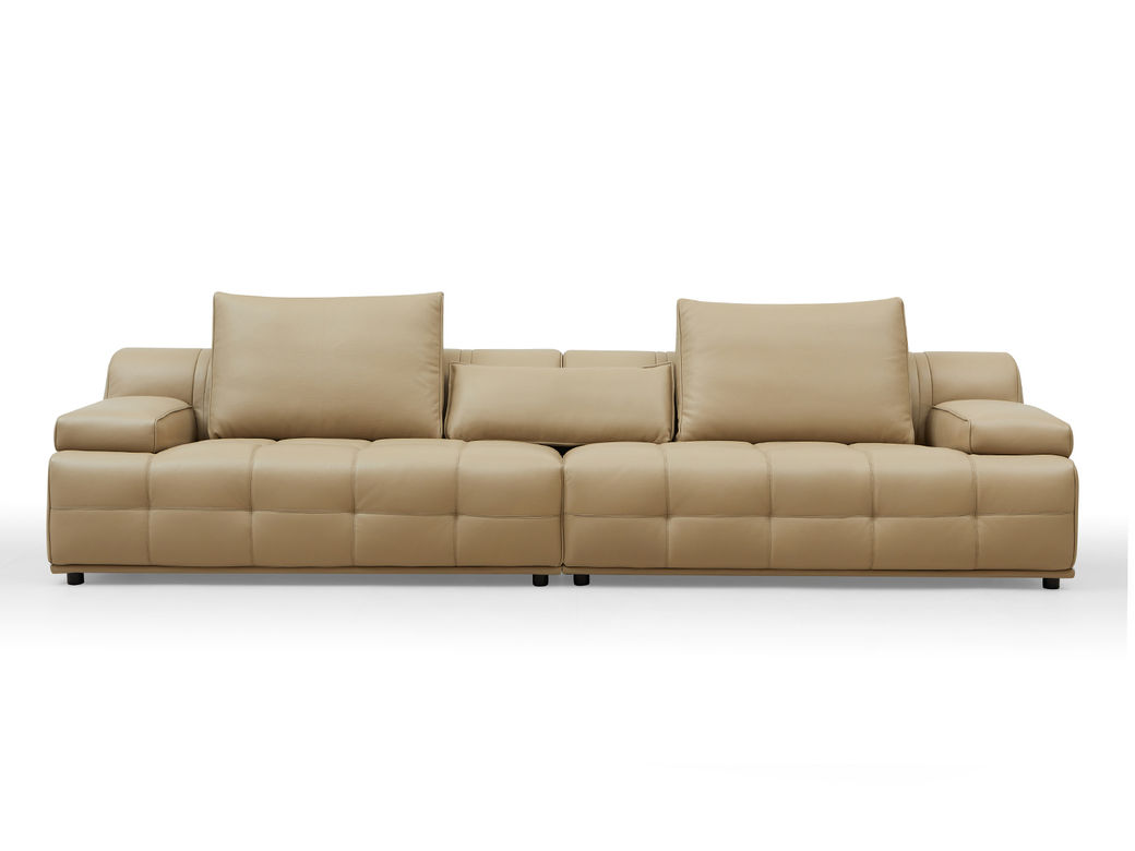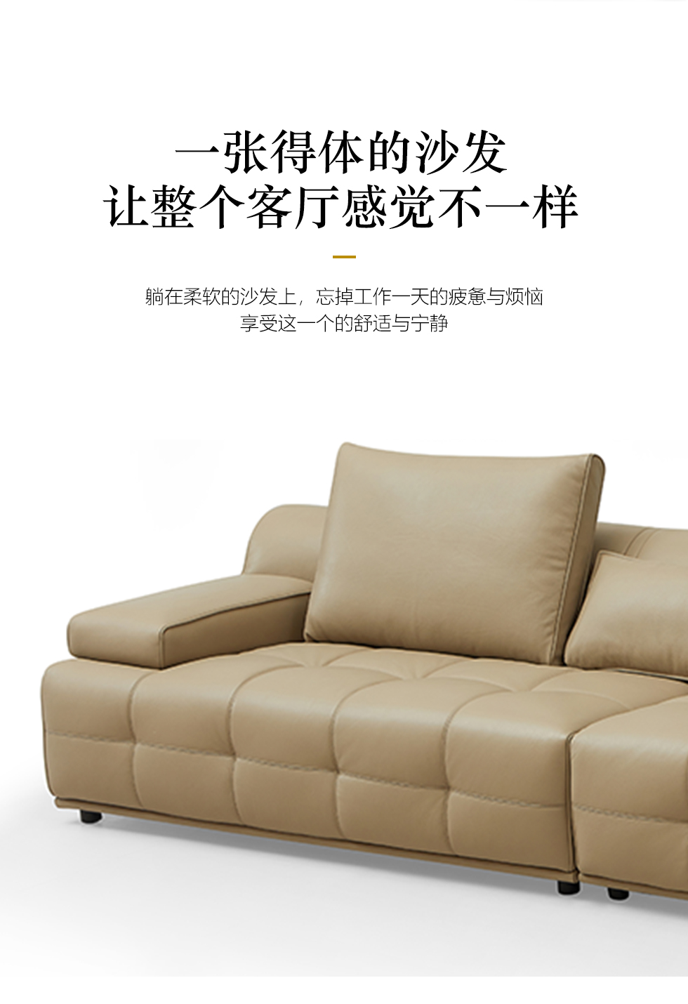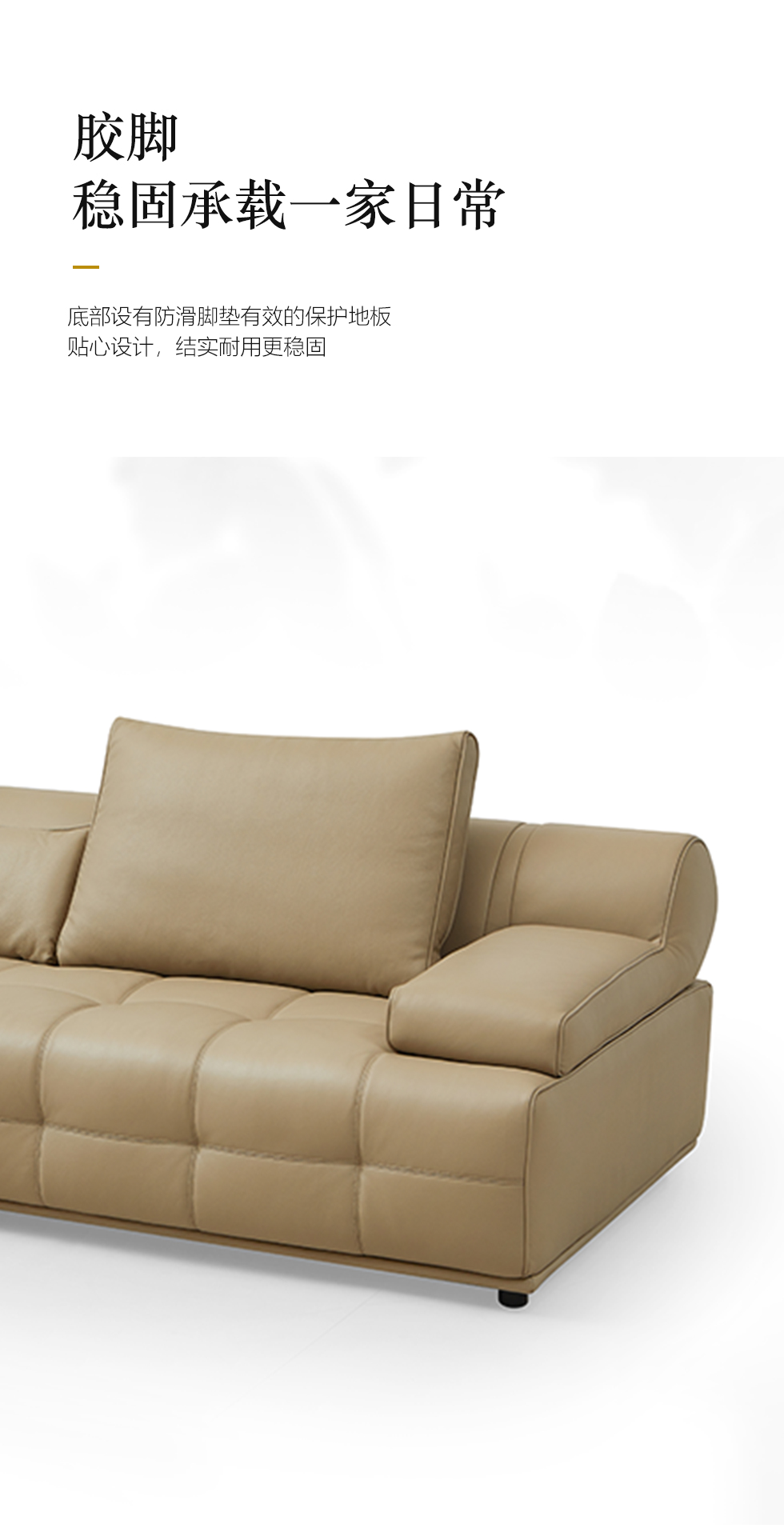 德卡图 现代简约 松木+多层板板+头层牛皮全皮+高回弹海绵+靠包羽绒填充+五金脚 四人位 3.1米沙发¥11137