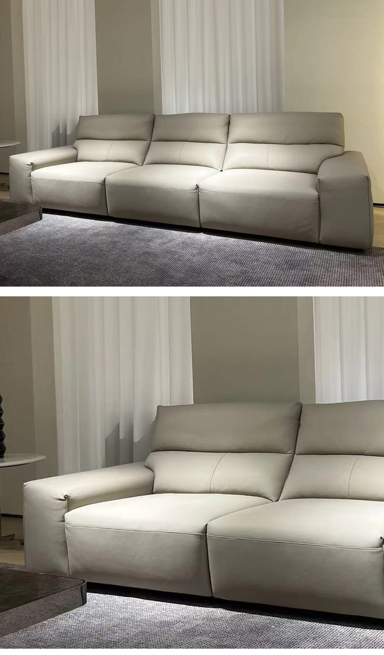 德卡图 现代简约 松木+多层板板+头层牛皮全皮+高回弹海绵+靠包羽绒填充+五金脚 四人位 3.1米沙发¥11137