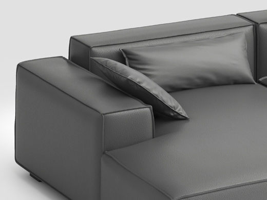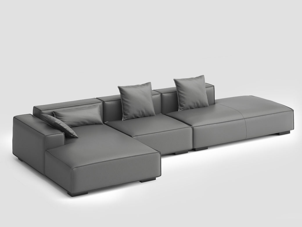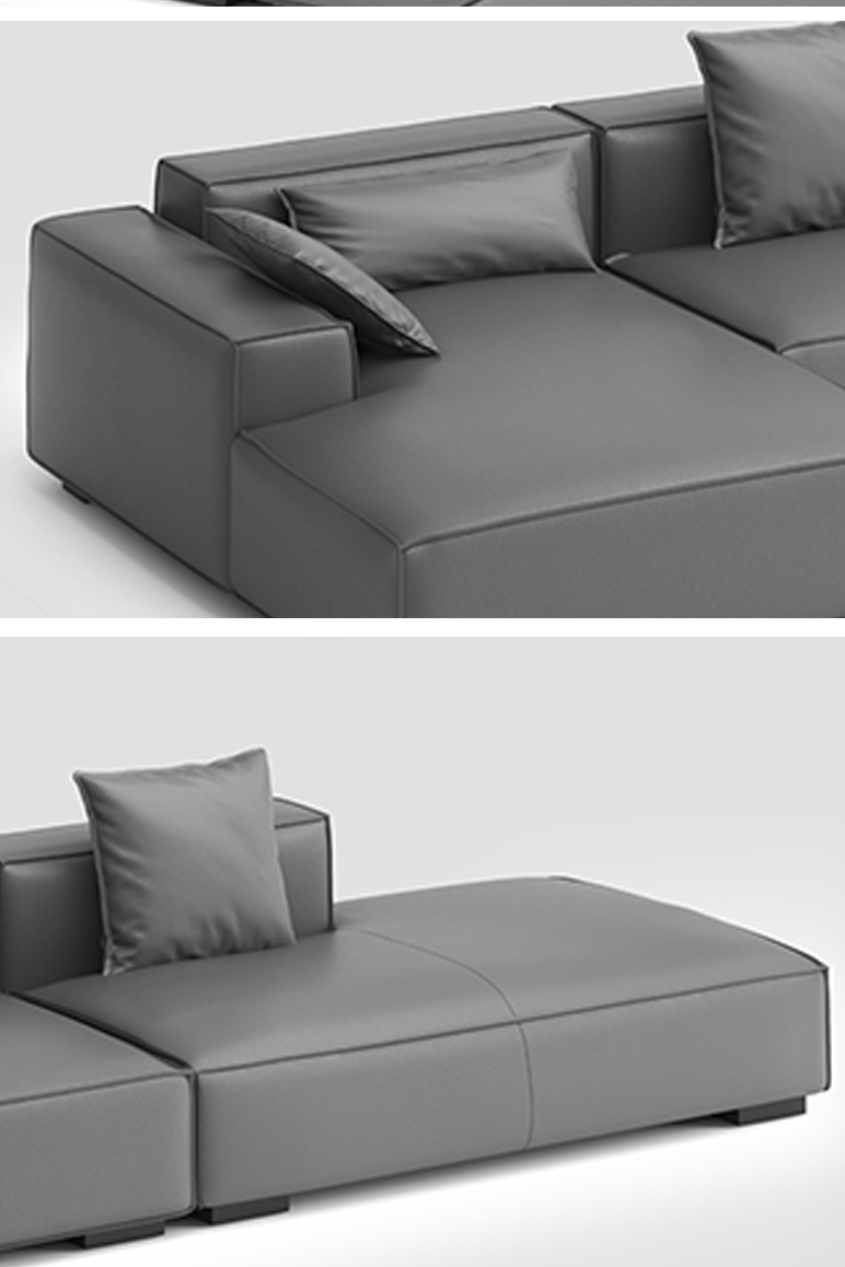 德卡图 现代简约 接触面进口头层牛皮+高密度海绵+俄罗斯进口落叶松框架+可活动头枕 1+3+左贵妃位 灰色 皮艺转角3.5米沙发