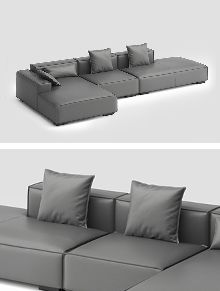 德卡图 现代简约 松木+多层板板+接触面头层牛皮+仿皮+高回弹海绵 3+左贵妃 3.53米沙发¥16557