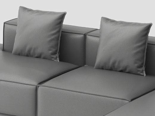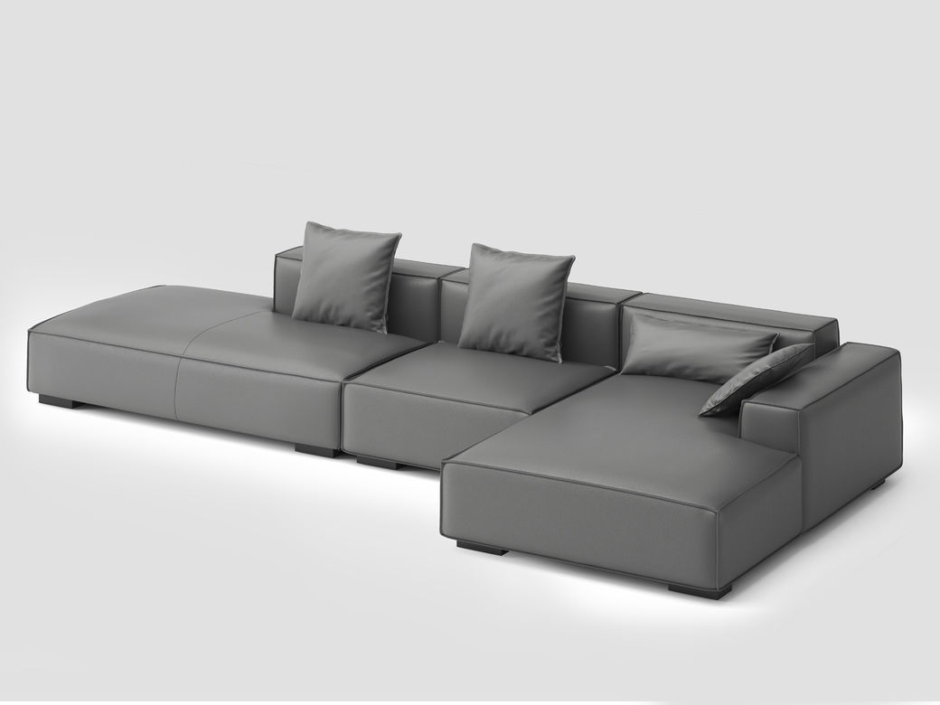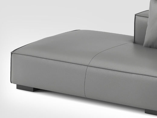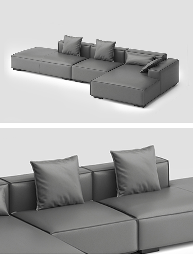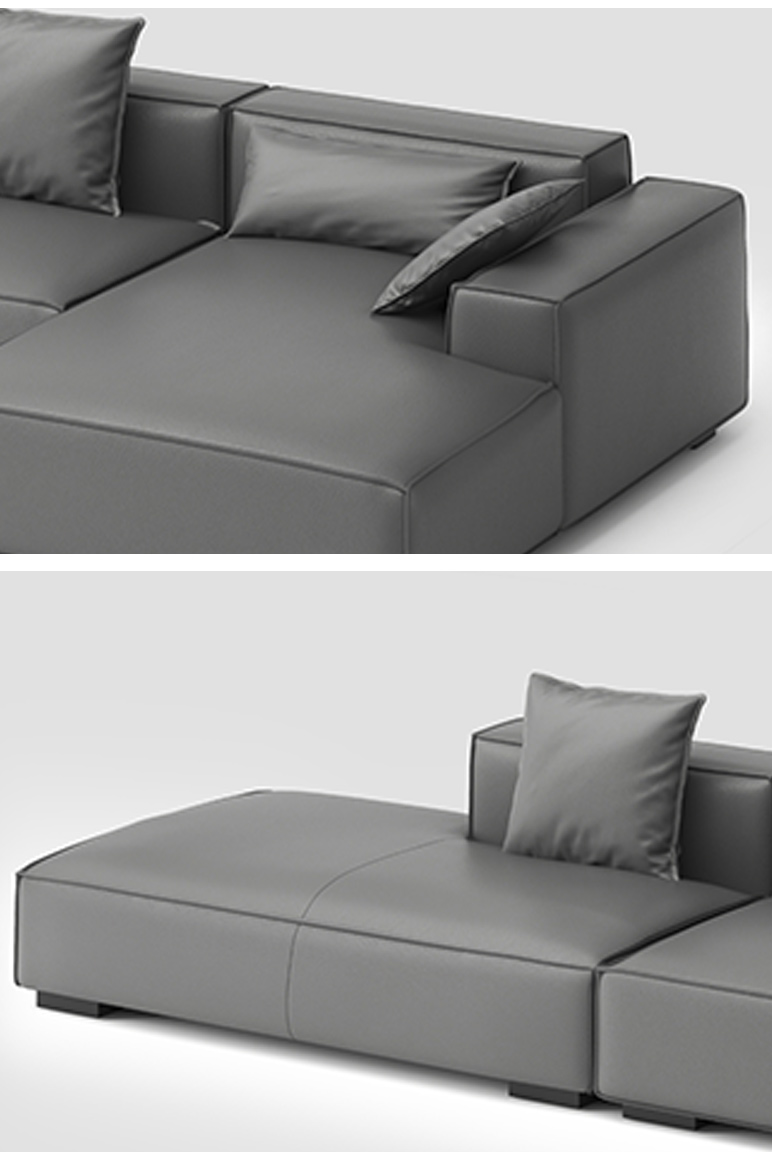 德卡图 现代简约 接触面进口头层牛皮+高密度海绵+俄罗斯进口落叶松框架+可活动头枕 1+3+左贵妃位 灰色 皮艺转角3.5米沙发
