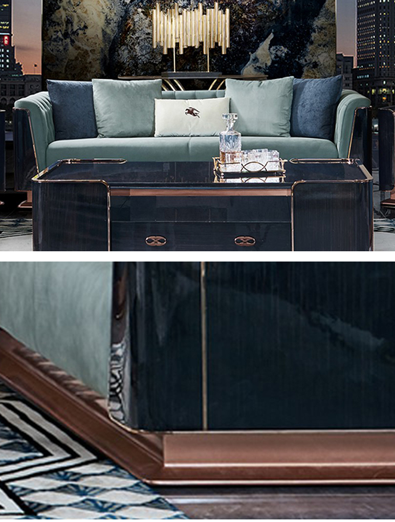 拉斐尔 轻奢 木纹木皮+多层实木板弯板+全实木内架+电镀五金+接触面头层牛皮真皮+仿真皮 1+2+3 沙发¥29810