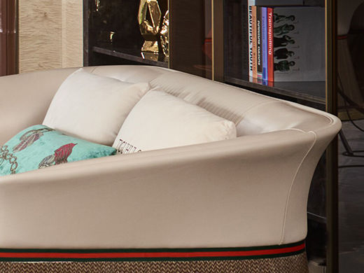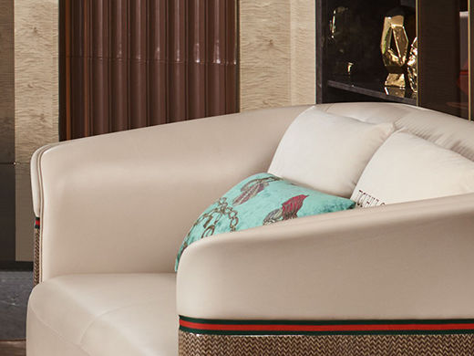 拉斐尔 轻奢 木纹木皮+多层实木板弯板+全实木内架+电镀五金+接触面头层牛皮真皮+仿真皮 休*1+2+3 沙发