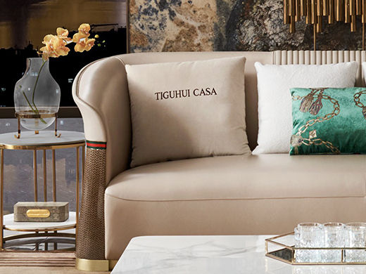 拉斐尔 轻奢 纳帕皮+仿真皮+(单位绒布)+进口落叶松+多层实木板+高回弹海绵+电镀不锈钢五金 1+1+2+4 沙发¥15879